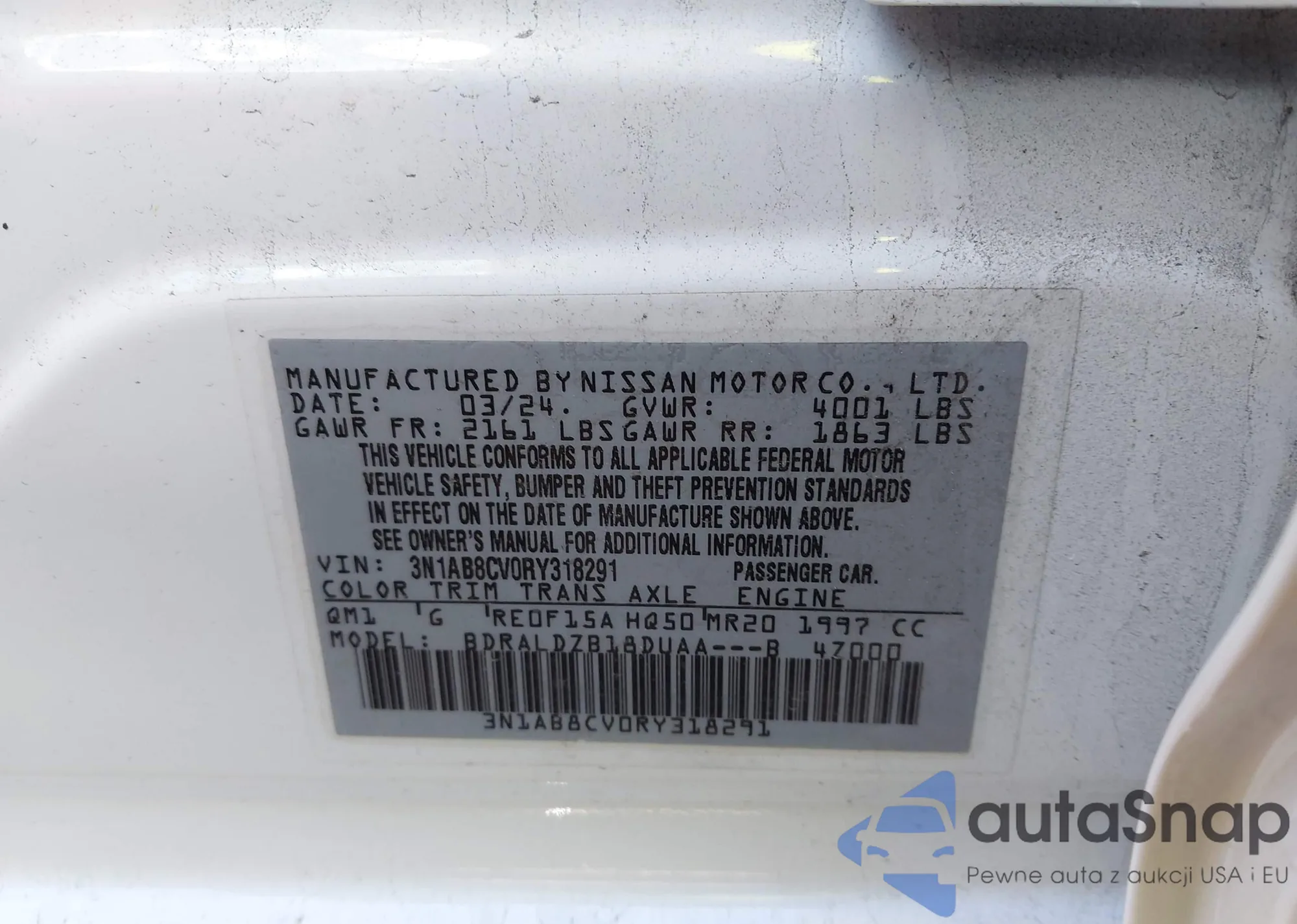 • VIN 3N1AB8CV0RY318291