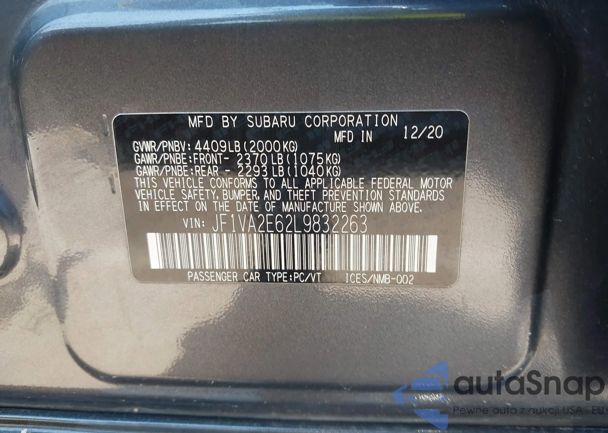 LOT: 43280093 VIN: JF1SG63694H741218