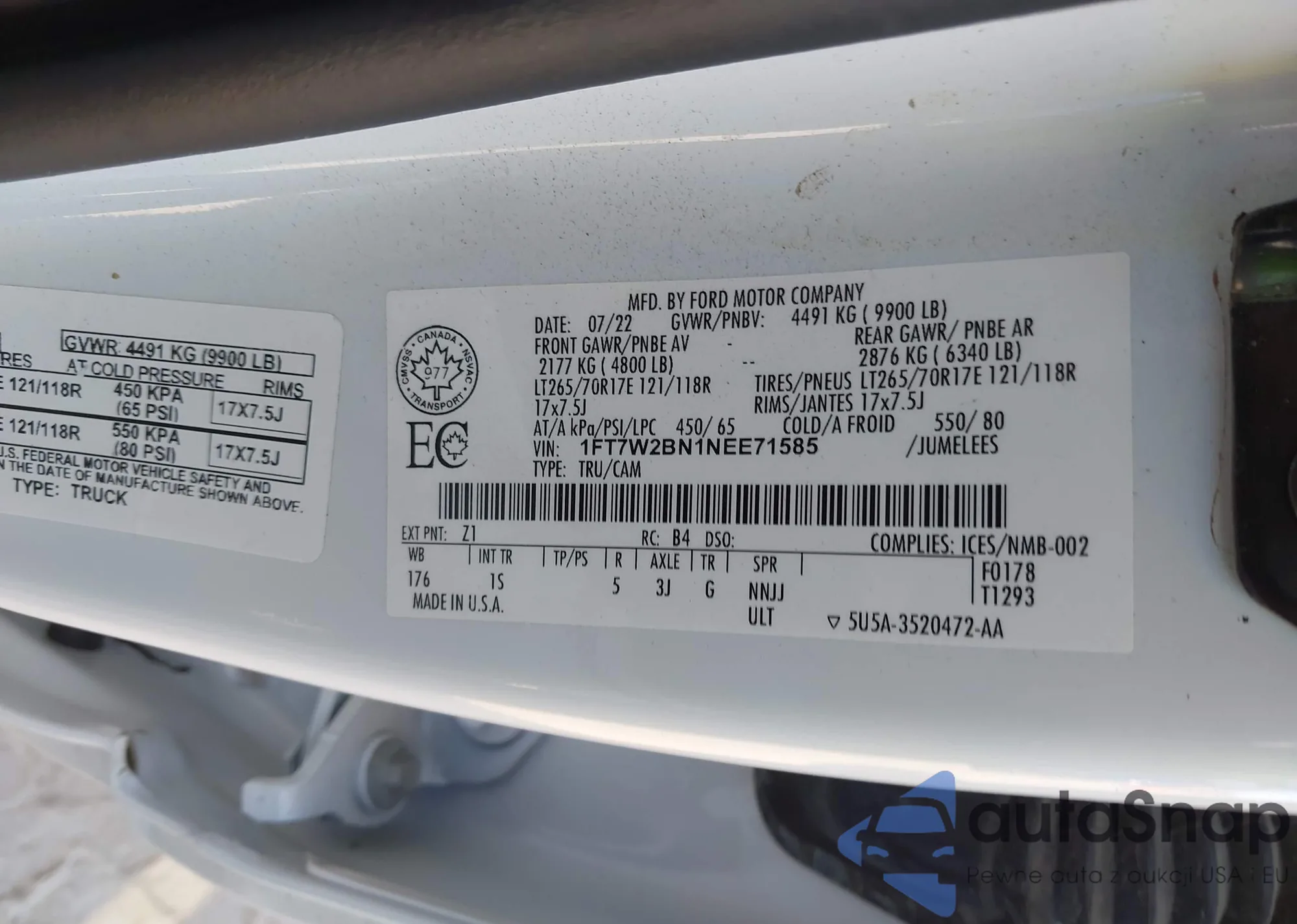 • VIN 1FT7W2BN1NEE71585