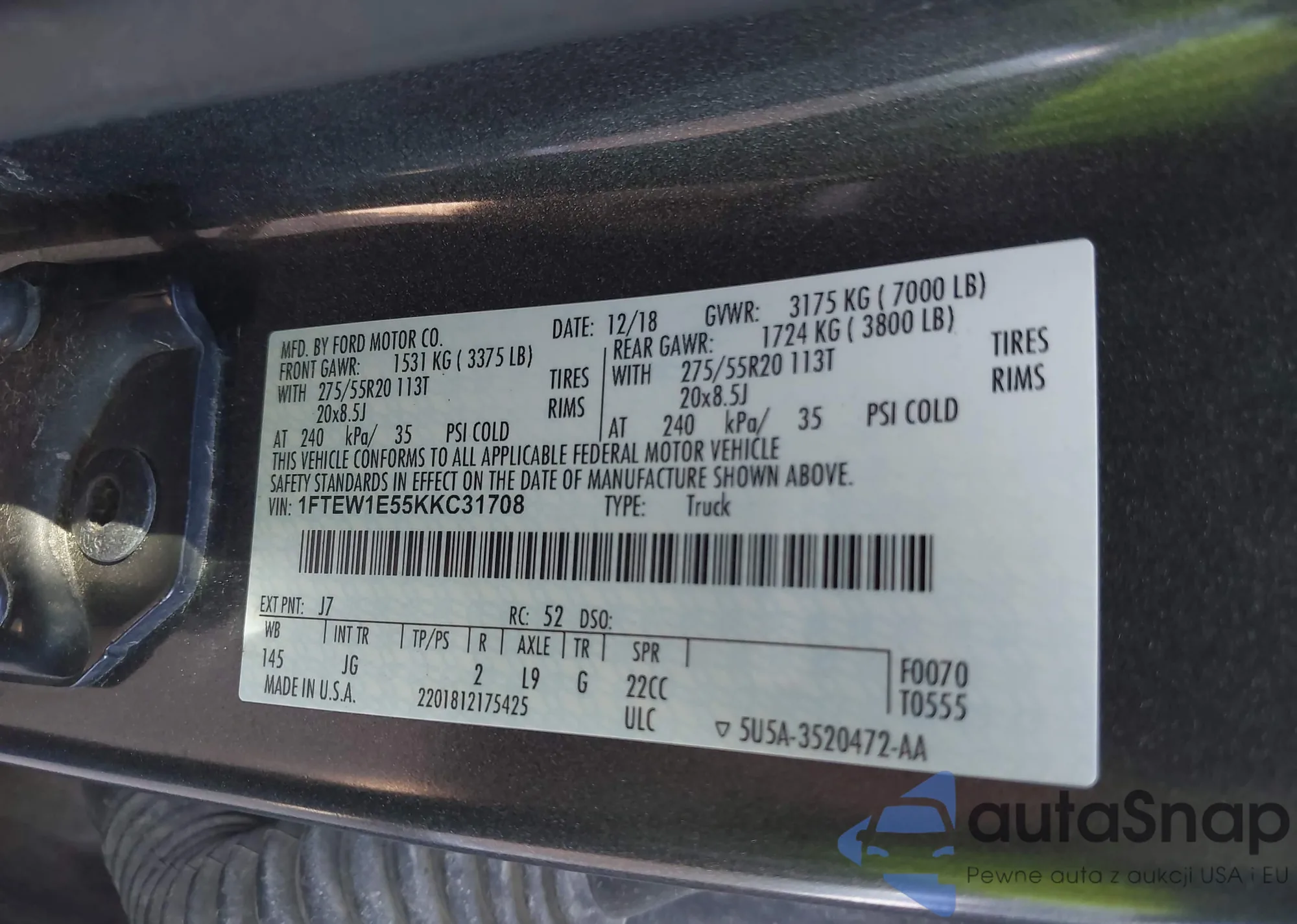 LOT: 43309999 VIN: 1FTEW1E55KKC31708