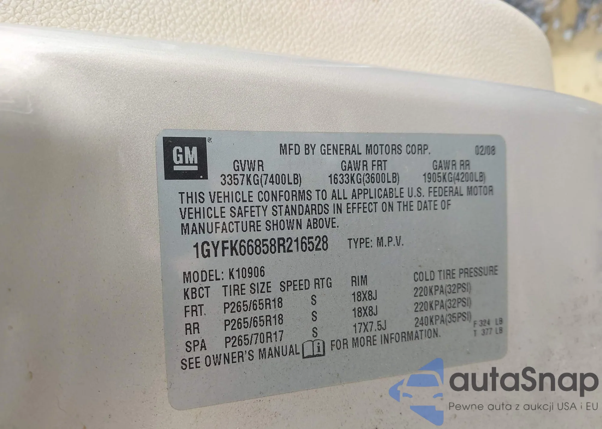 • VIN KL77LGE25RC096984