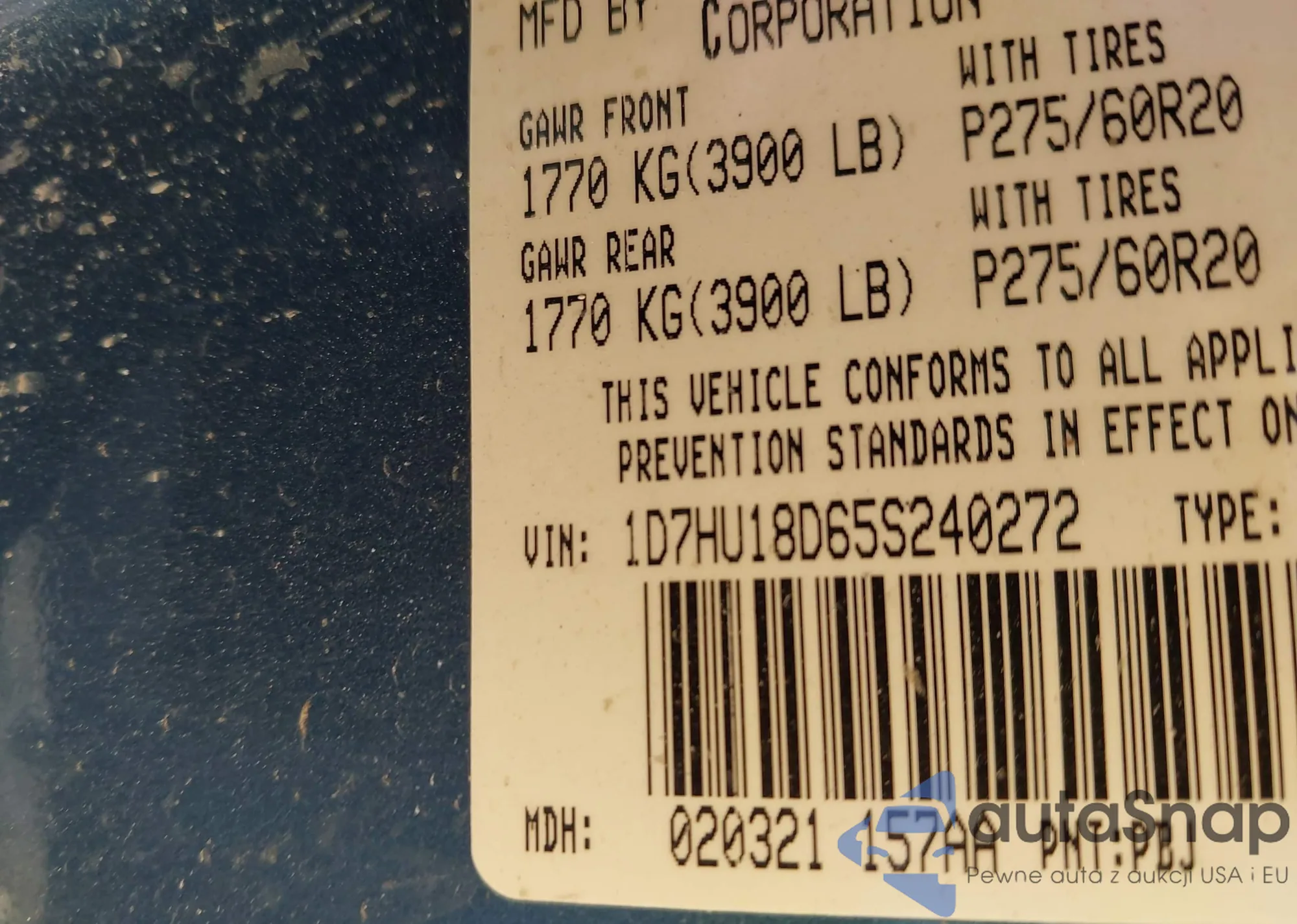 LOT: 43192455 VIN: 1FATP8UH3K5179315
