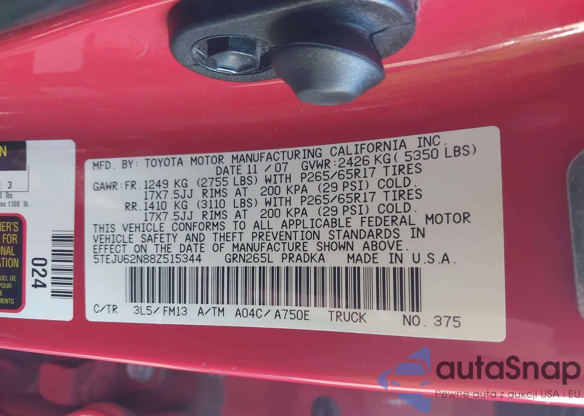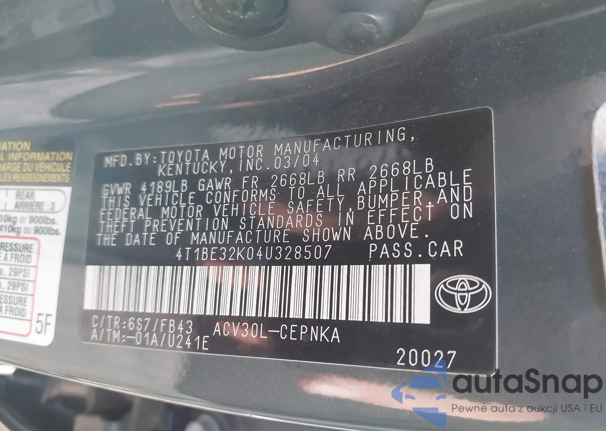 • VIN 4T1BE32K04U328507