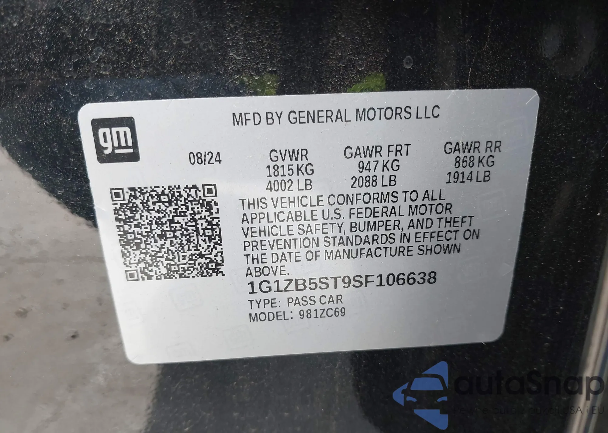 • VIN 1G1ZB5ST9SF106638