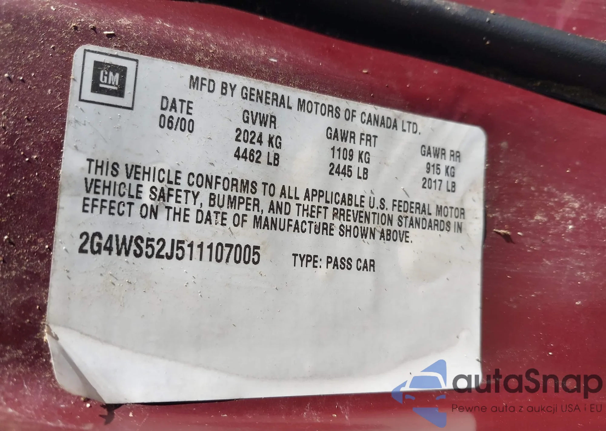 • VIN 2G4WS52J511107005