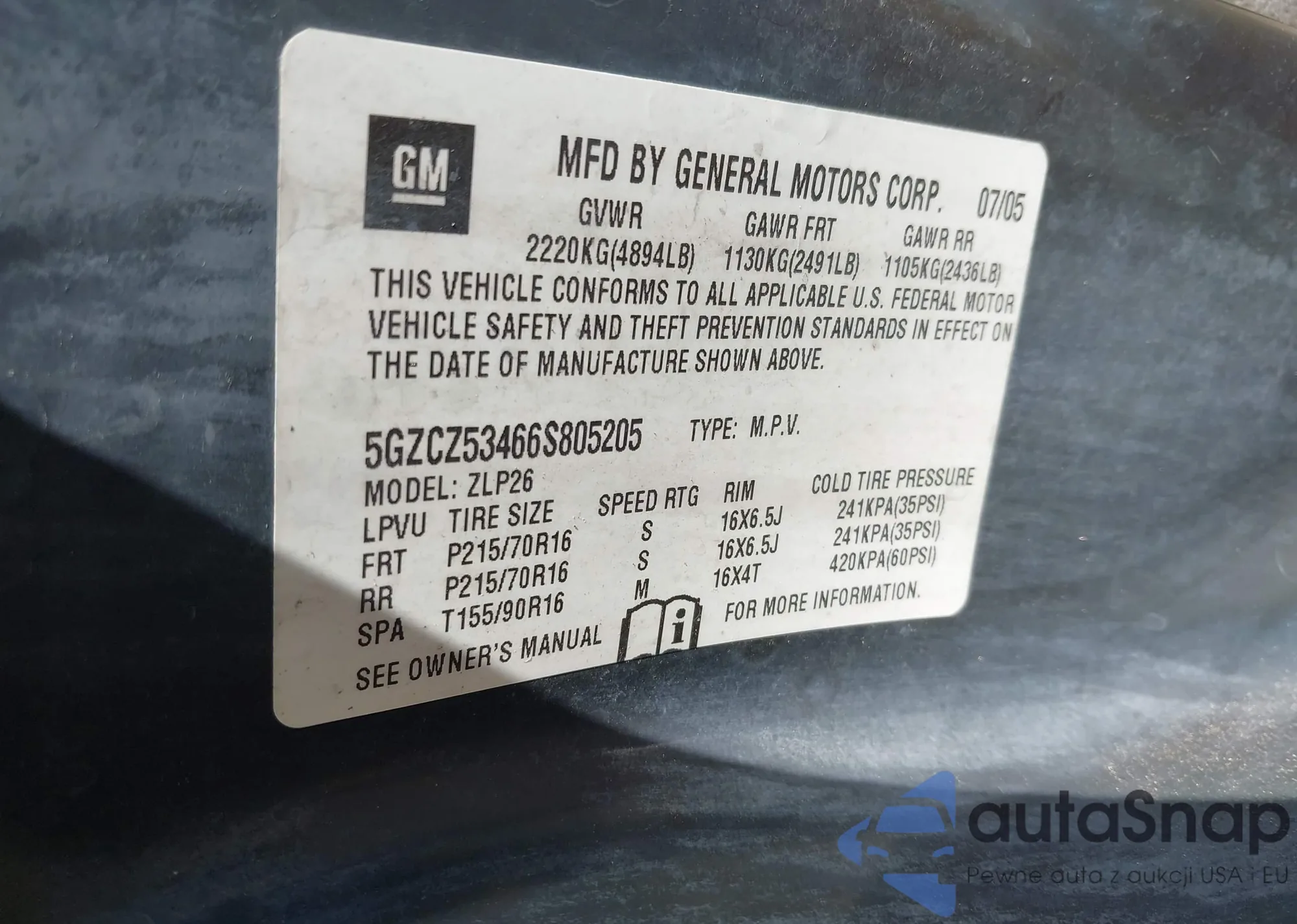 • VIN 5GZCZ53466S805205