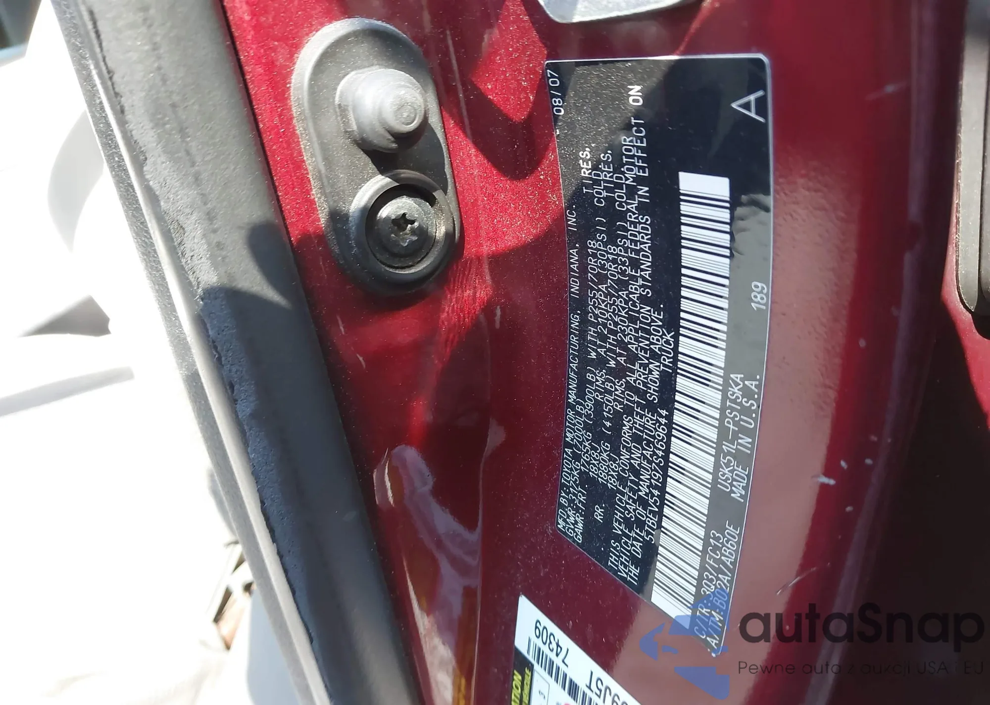 • VIN 5TFCZ5AN6HX082555