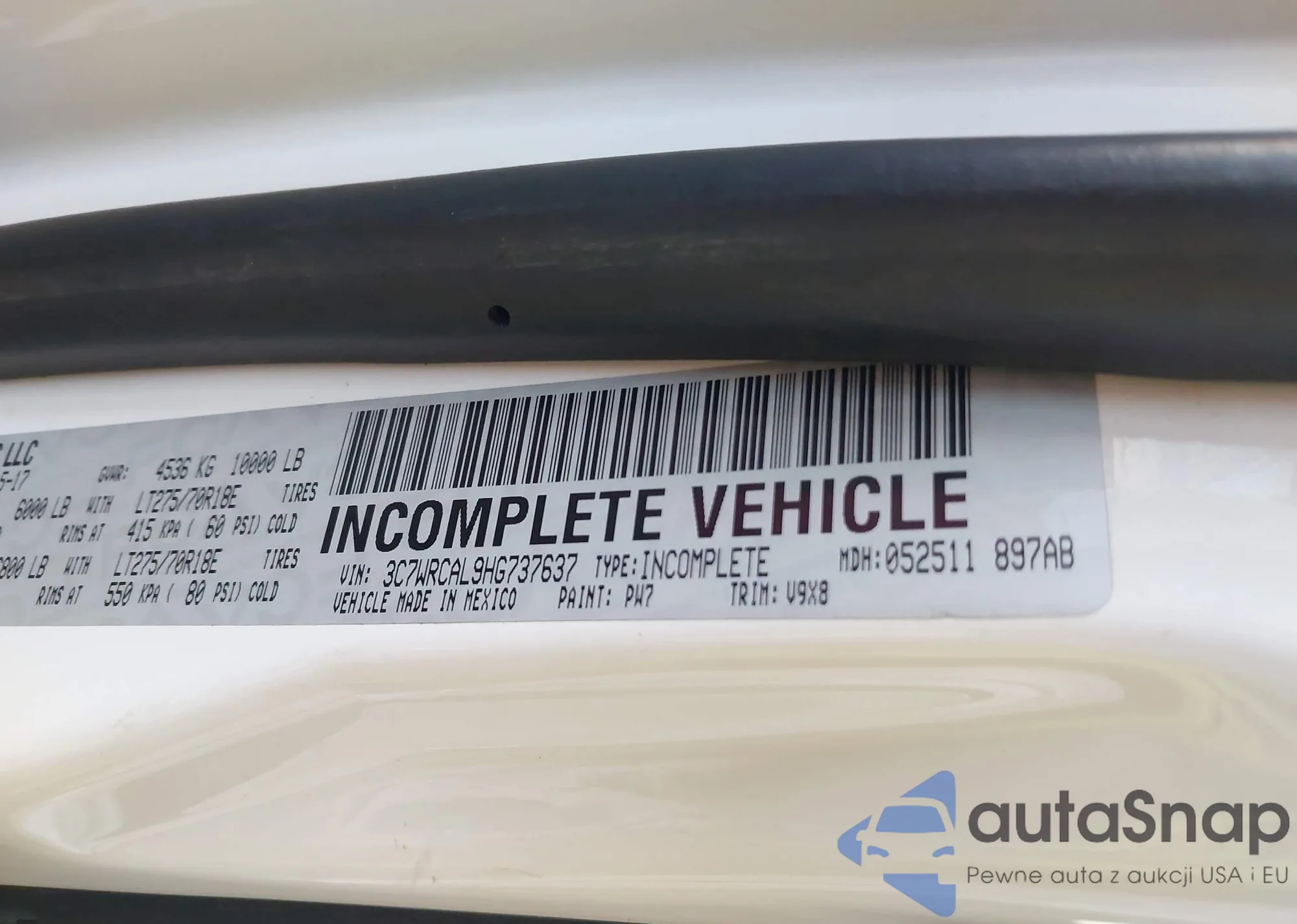 LOT: 42716118 VIN: 5TFCZ5AN6HX082555