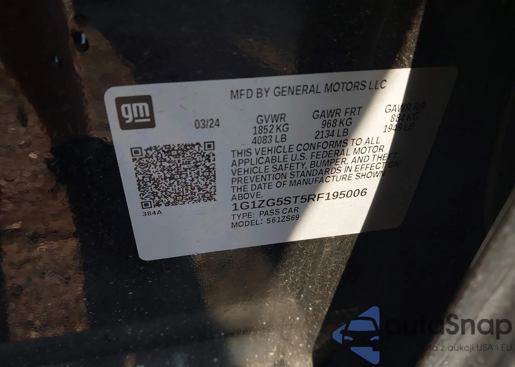 LOT: 43368493 VIN: 1G1ZG5ST5RF195006