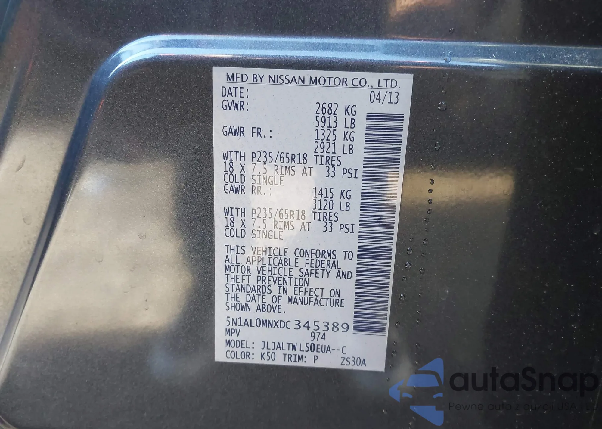 LOT: 42184435 VIN: 5N1BT3AB4SC848722