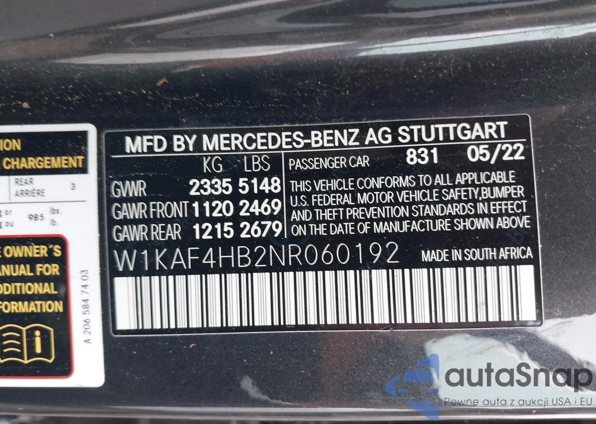 • VIN W1KAF4HB2NR060192