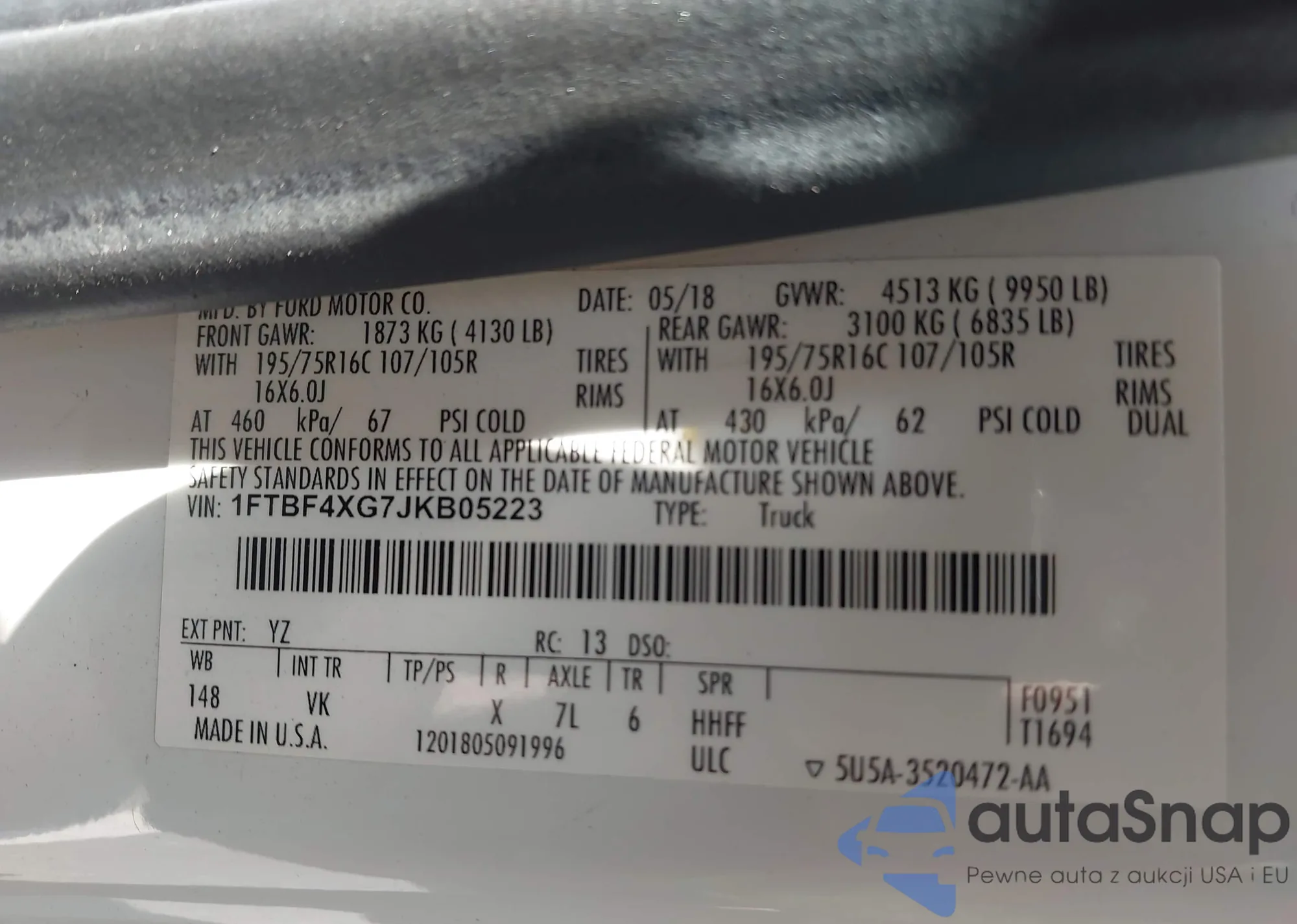 • VIN 1FTBF4XG7JKB05223