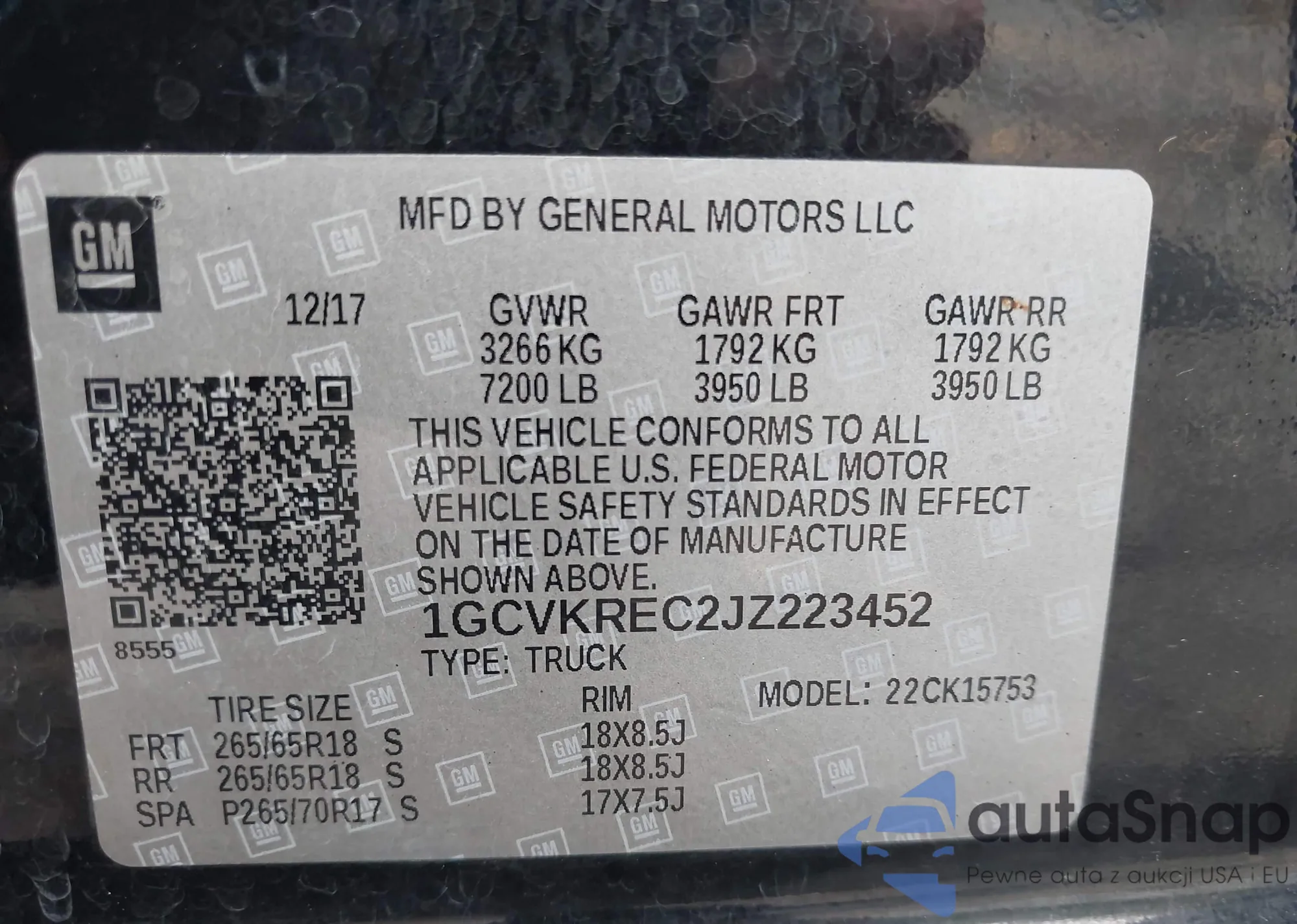 LOT: 43293409 VIN: 1GCVKREC2JZ223452