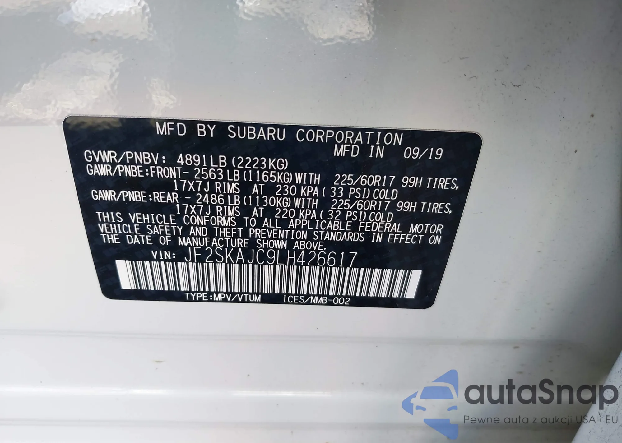 LOT: 43004522 VIN: 4S4WMAFD1L3448499