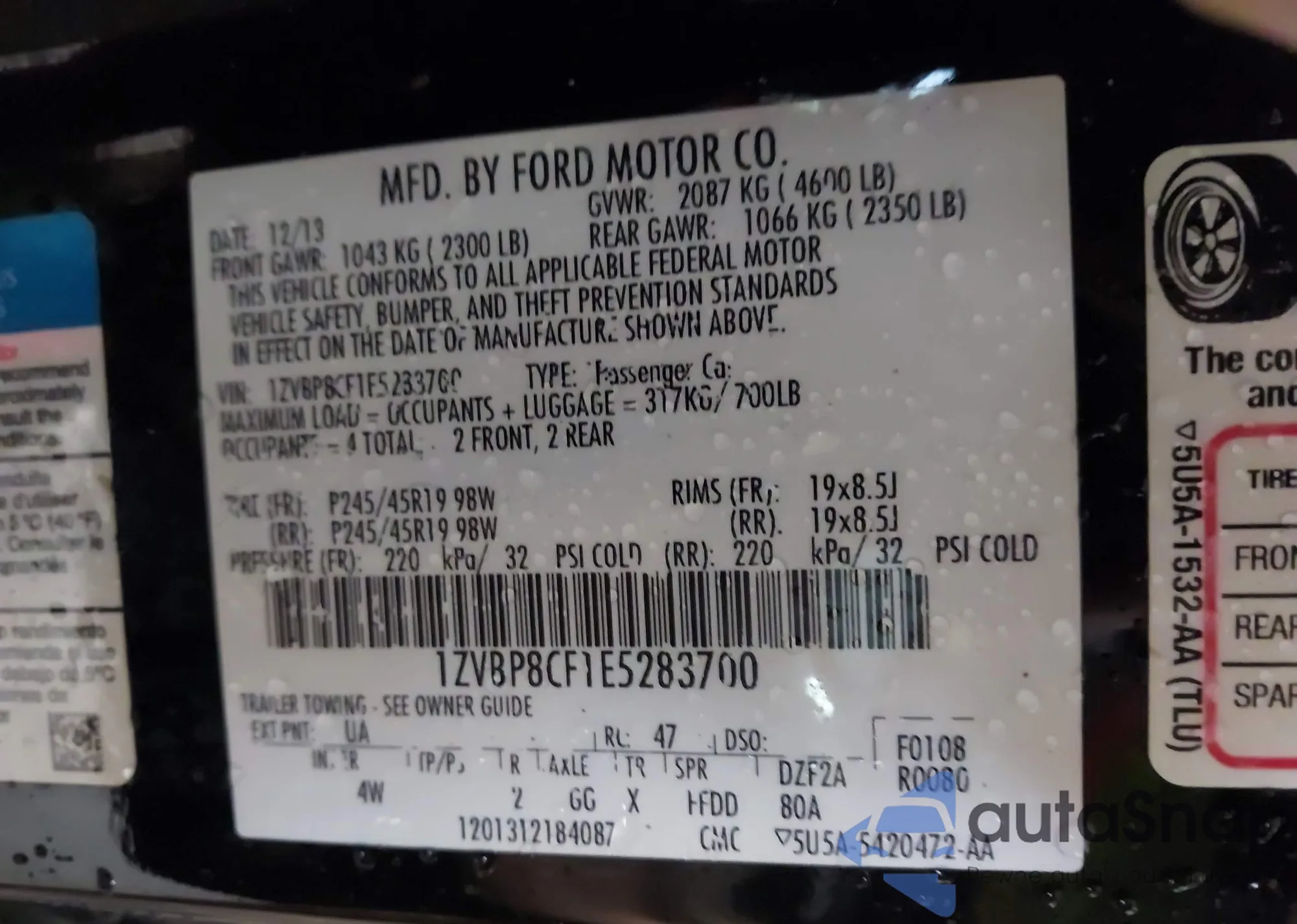 • VIN 1ZVBP8CF1E5283700