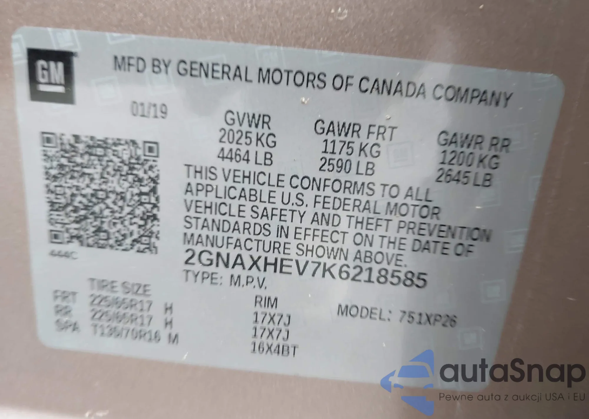 LOT: 43500929 VIN: 2GNAXHEV7K6218585