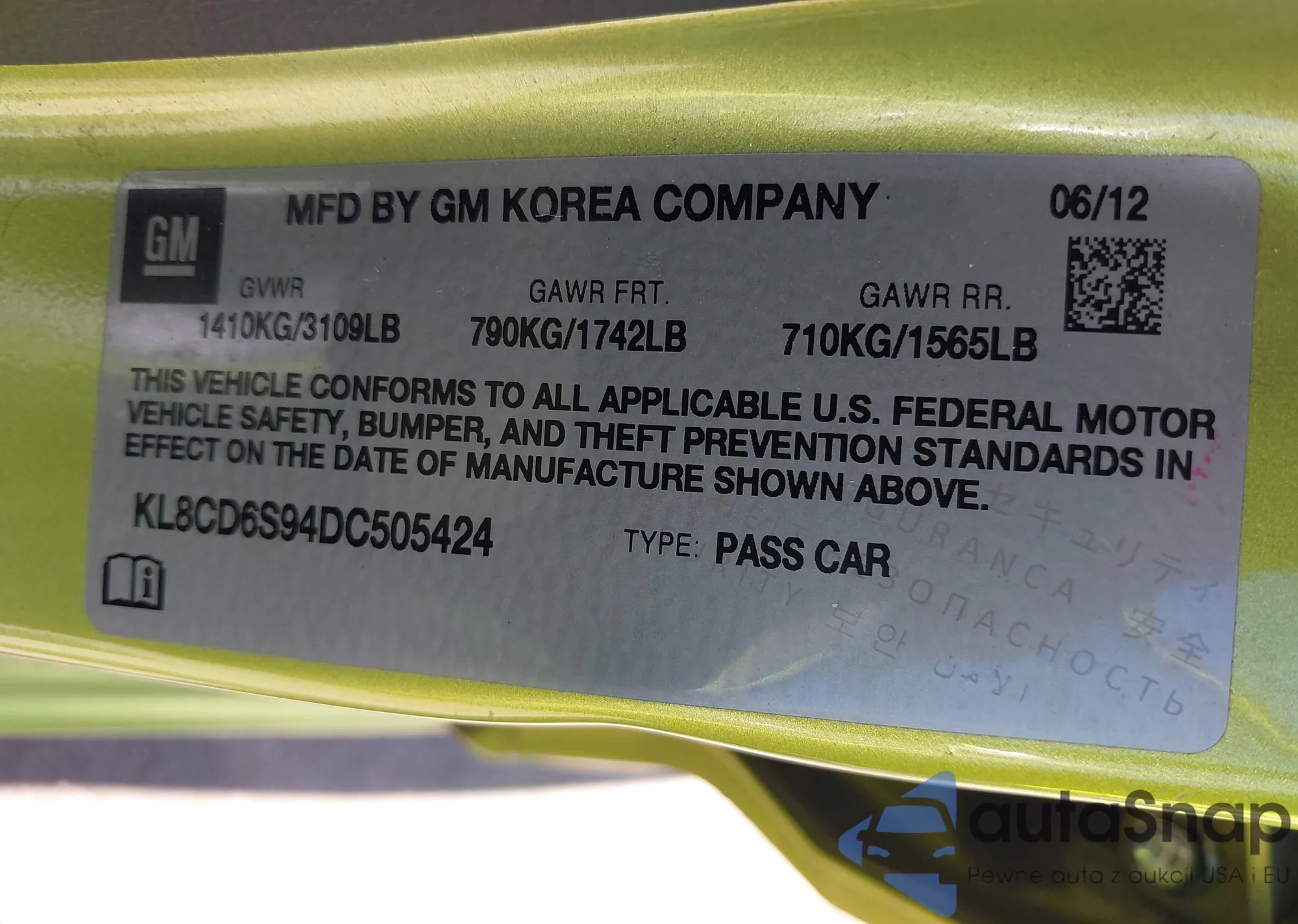 • VIN KL8CD6S94DC505424
