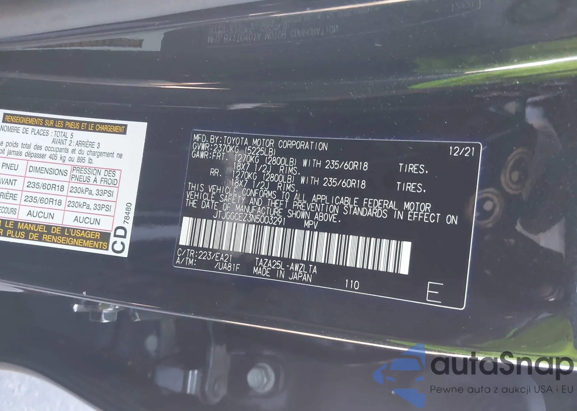 LOT: 43481422 VIN: JTJGGCEZ3N5003291