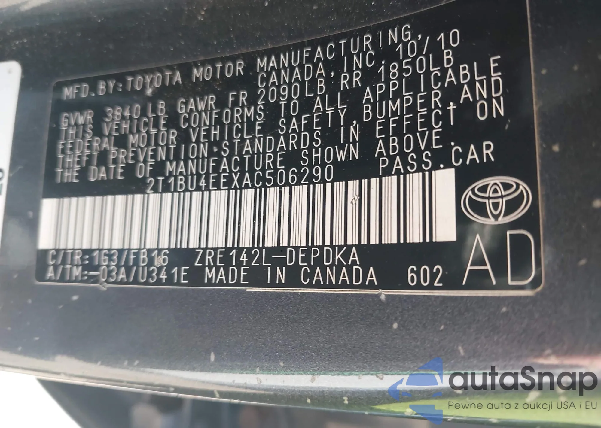 • VIN 2T1BU4EEXAC506290