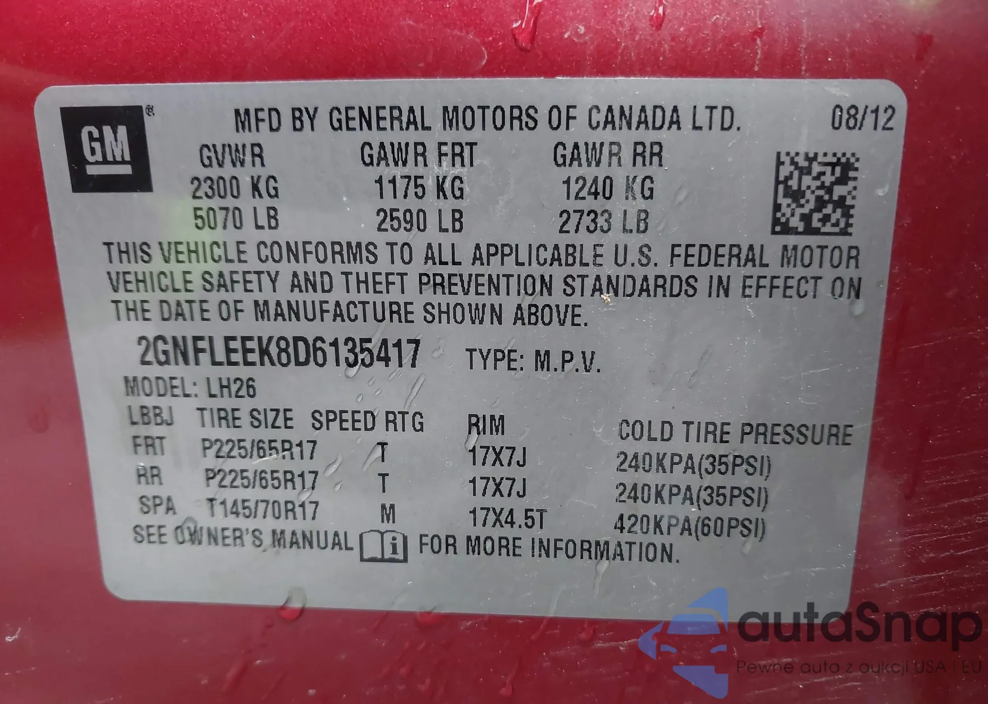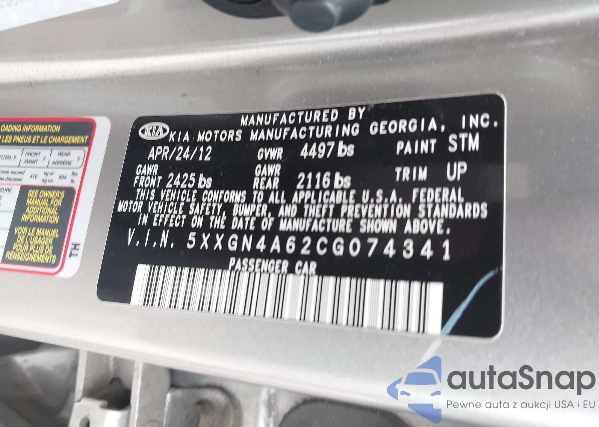 • VIN 5XXGN4A62CG074341