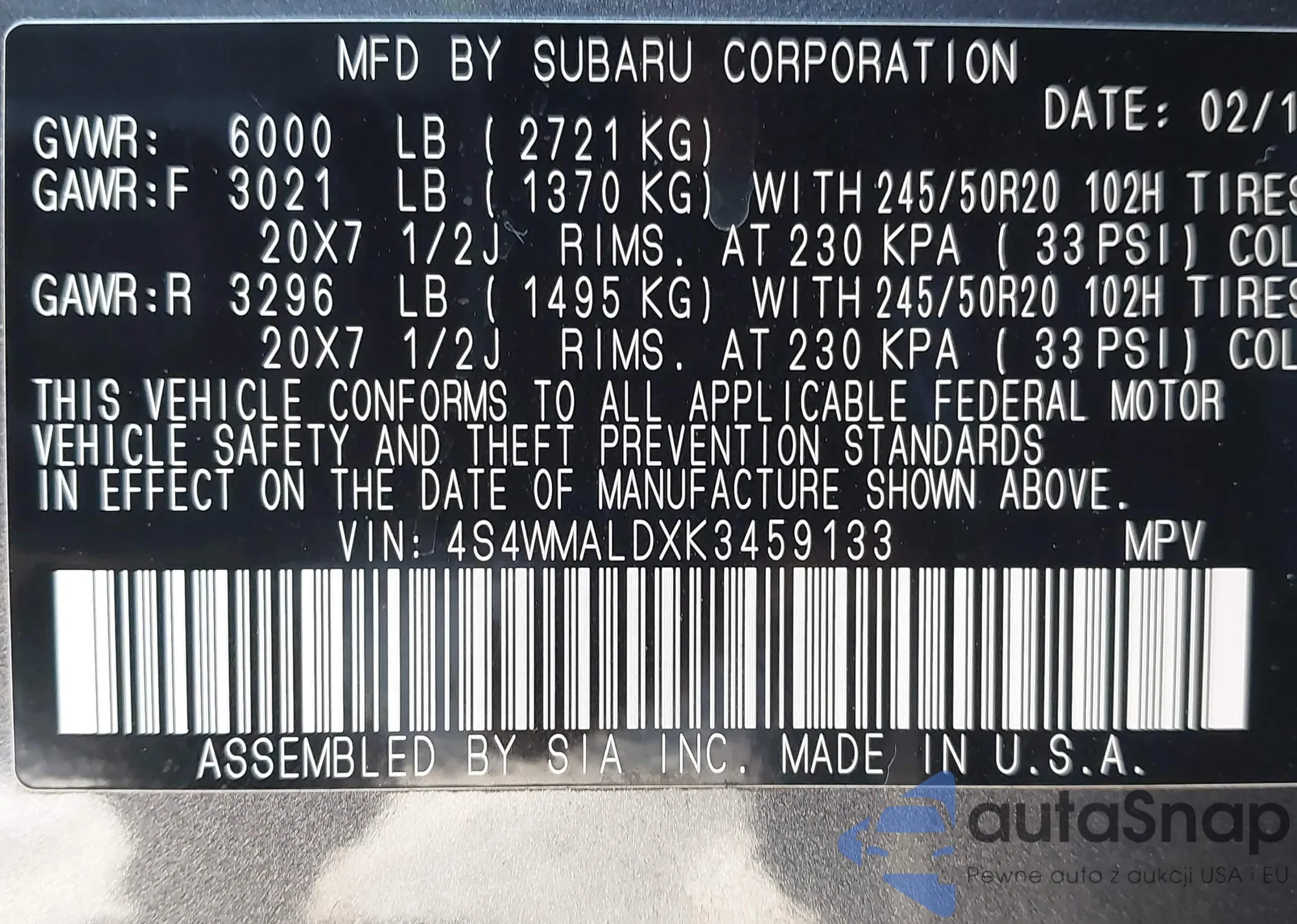 • VIN 4S4WMALDXK3459133
