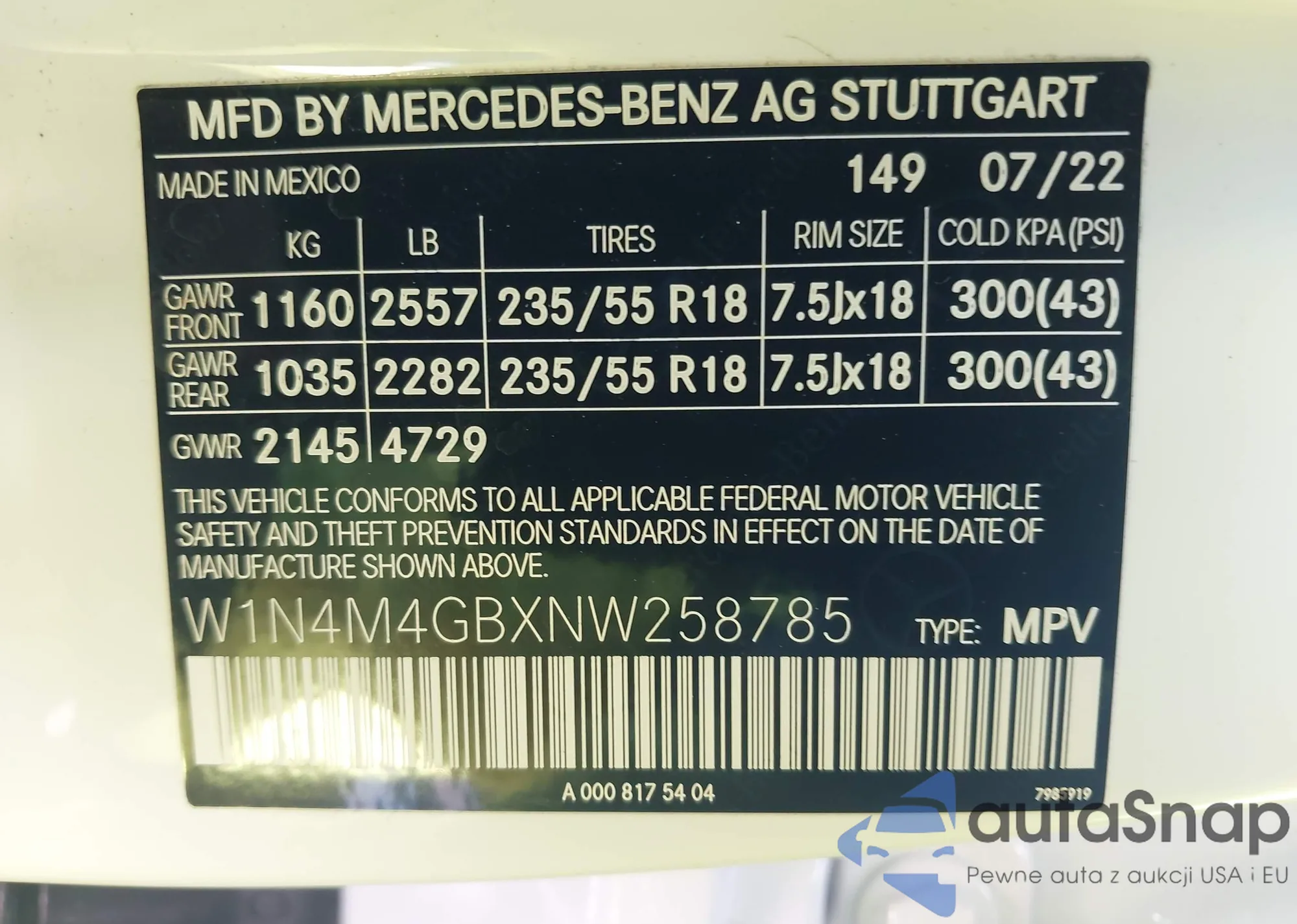 • VIN W1N4M4GBXNW258785