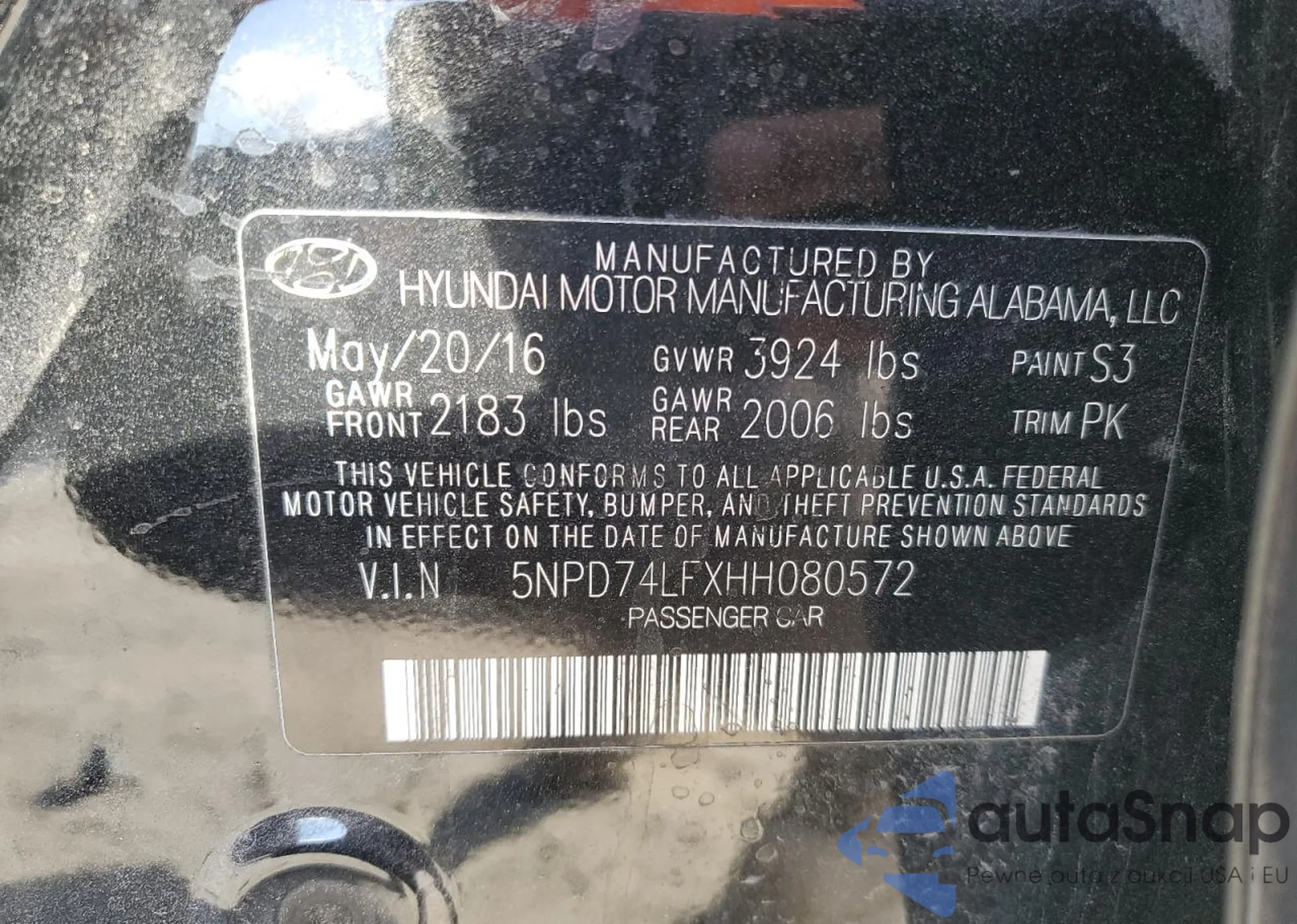 LOT: 90870465 VIN: 5NPD74LFXHH080572