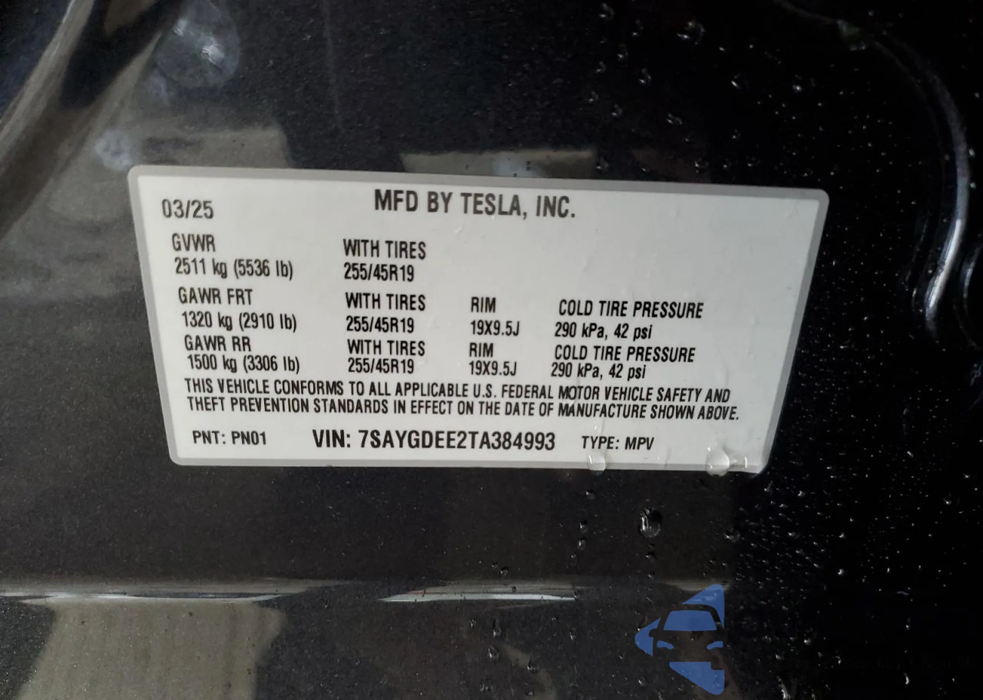 • VIN 7SAYGDEE2TA384993
