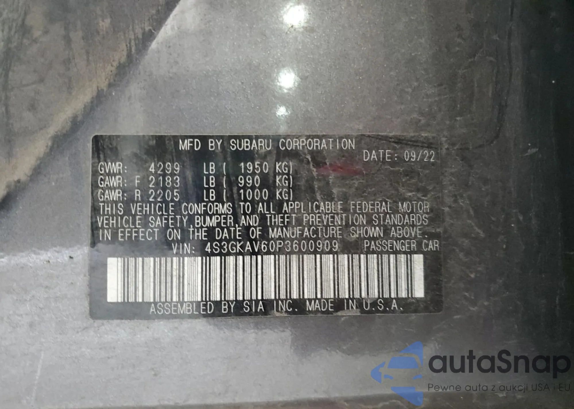 • VIN 4S3GKAV60P3600909