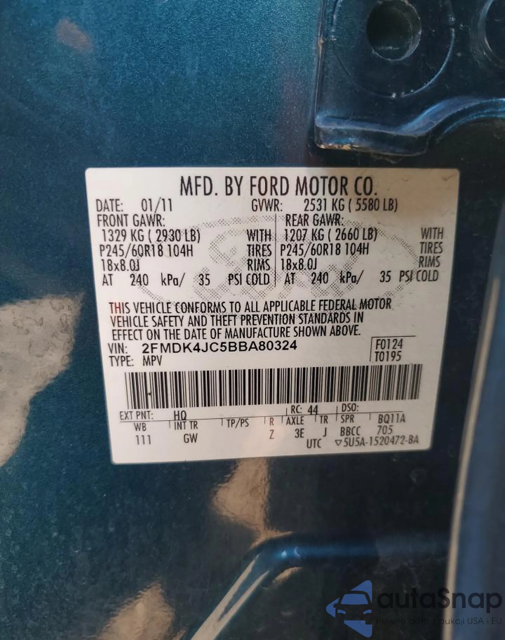LOT: 86653725 VIN: 2FMDK4JC5BBA80324