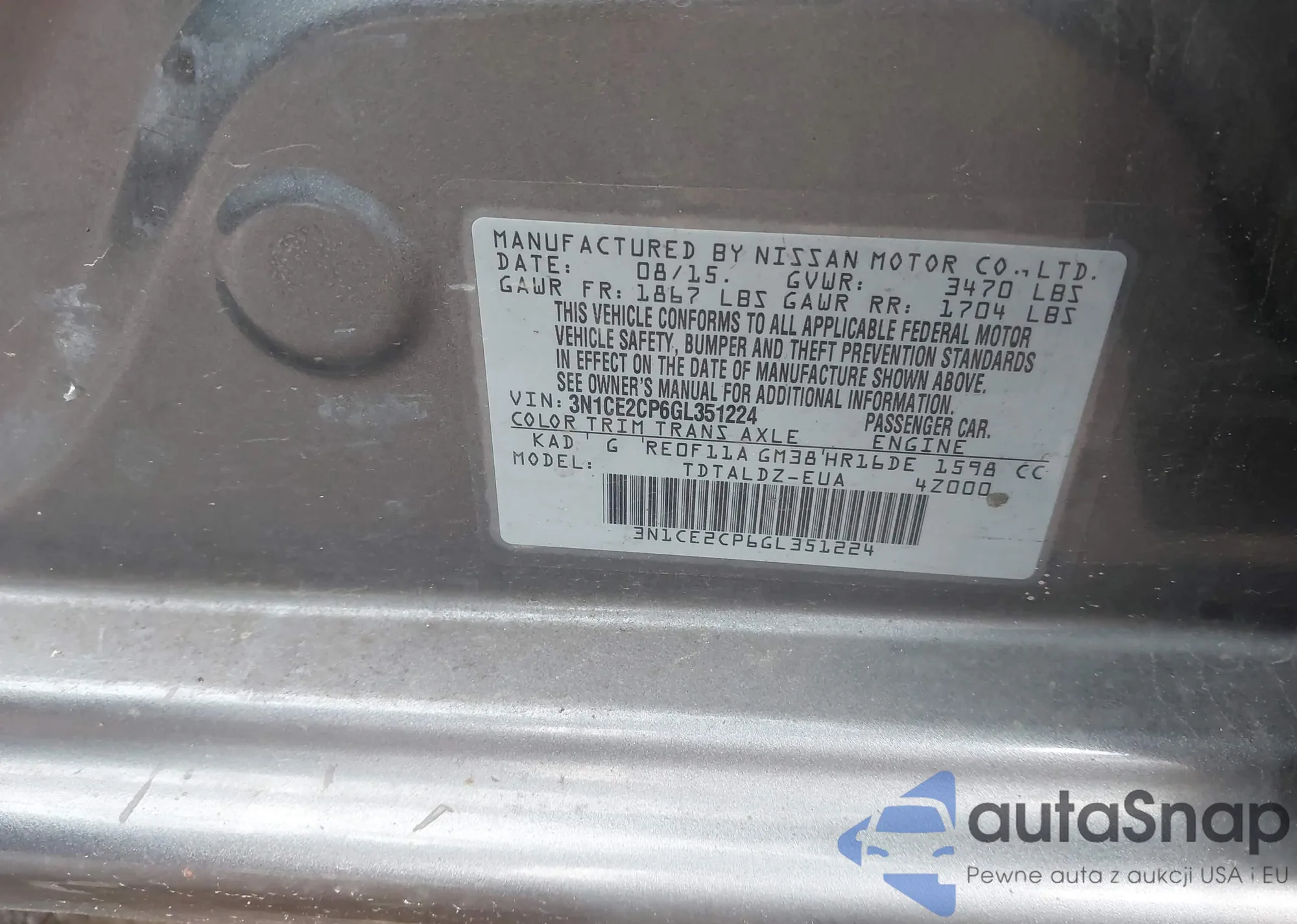 • VIN 3N1CE2CP6GL351224