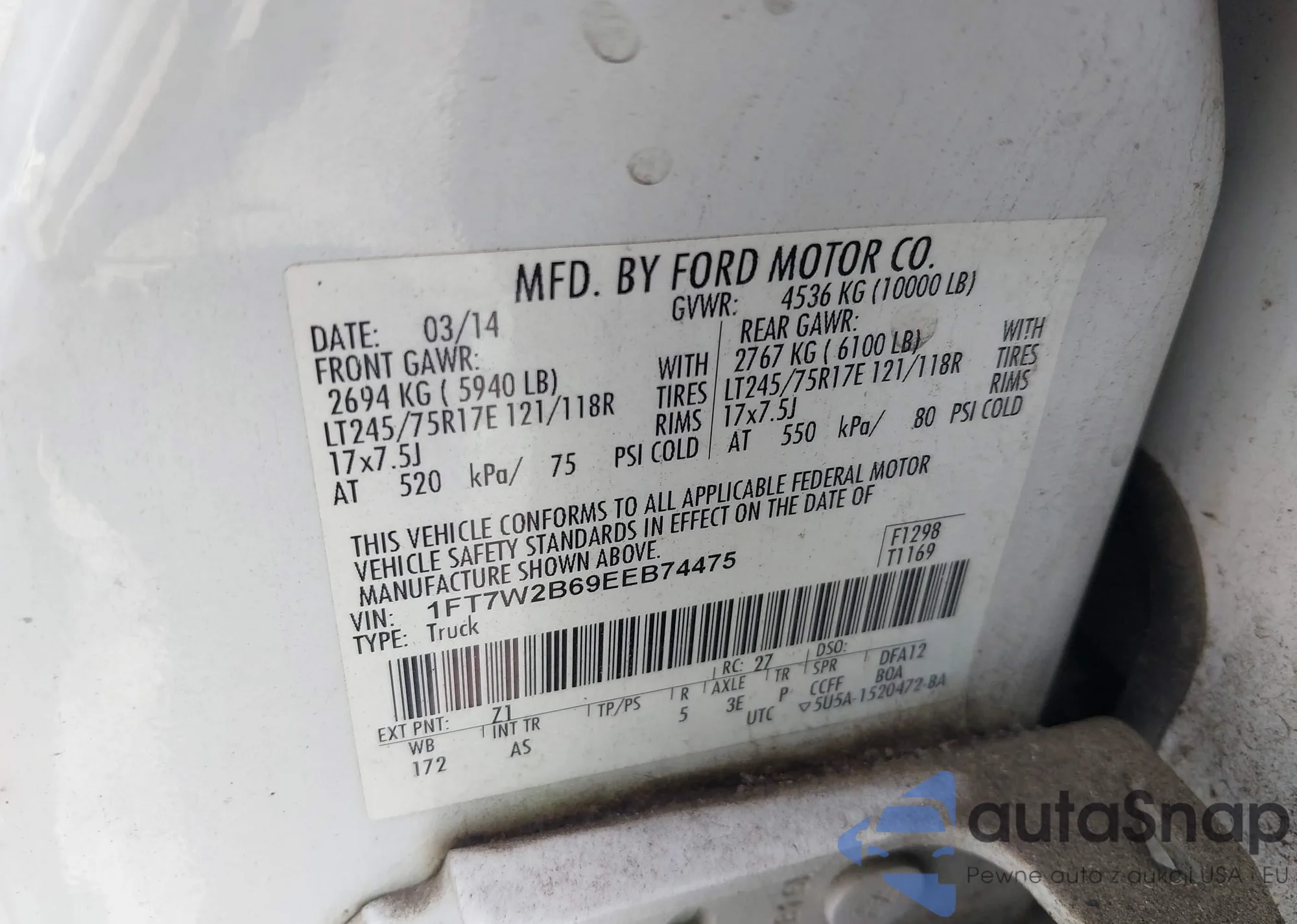 • VIN 1FT7W2B69EEB74475