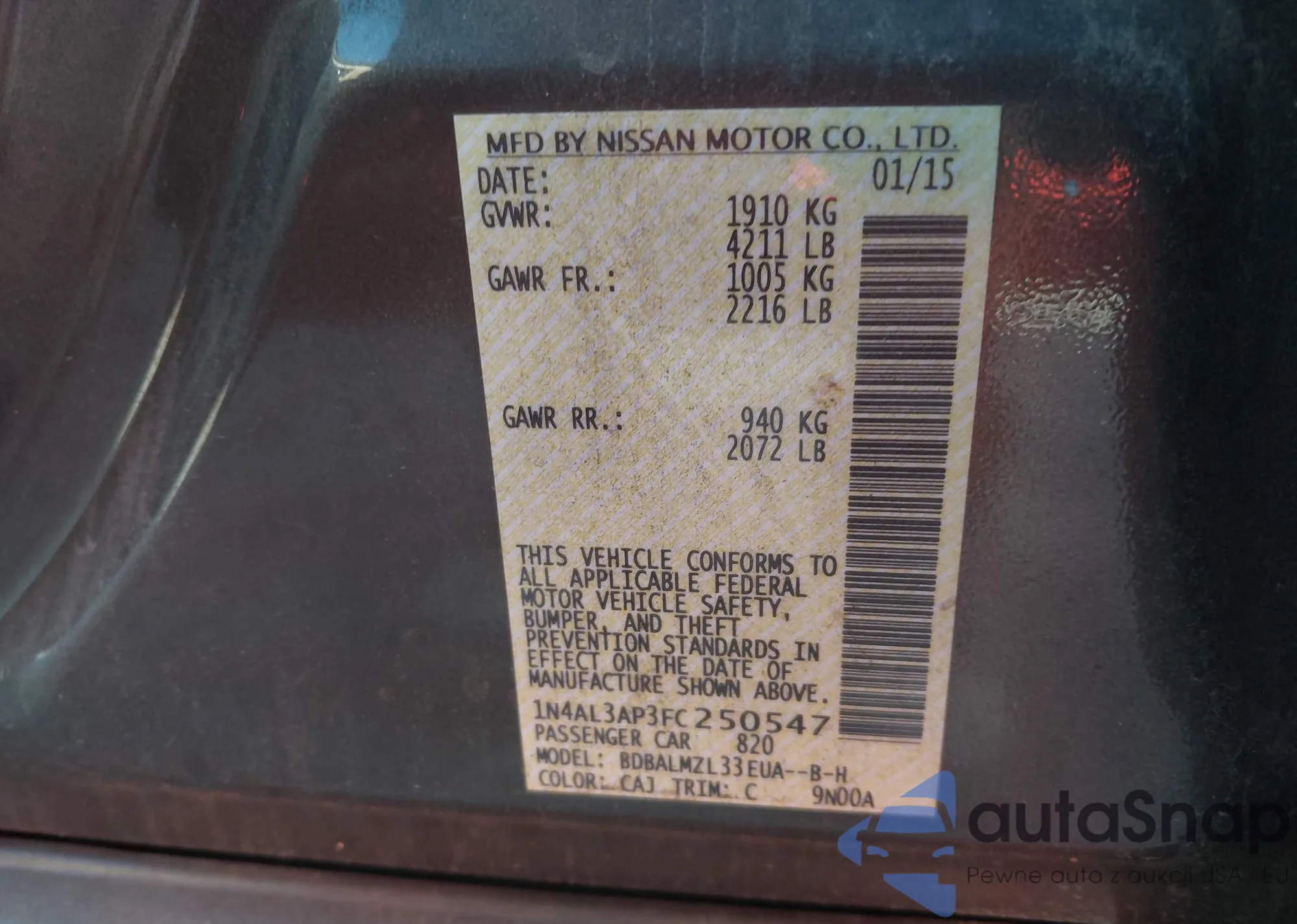 LOT: 43233753 VIN: 1N4AL3AP3FC250547