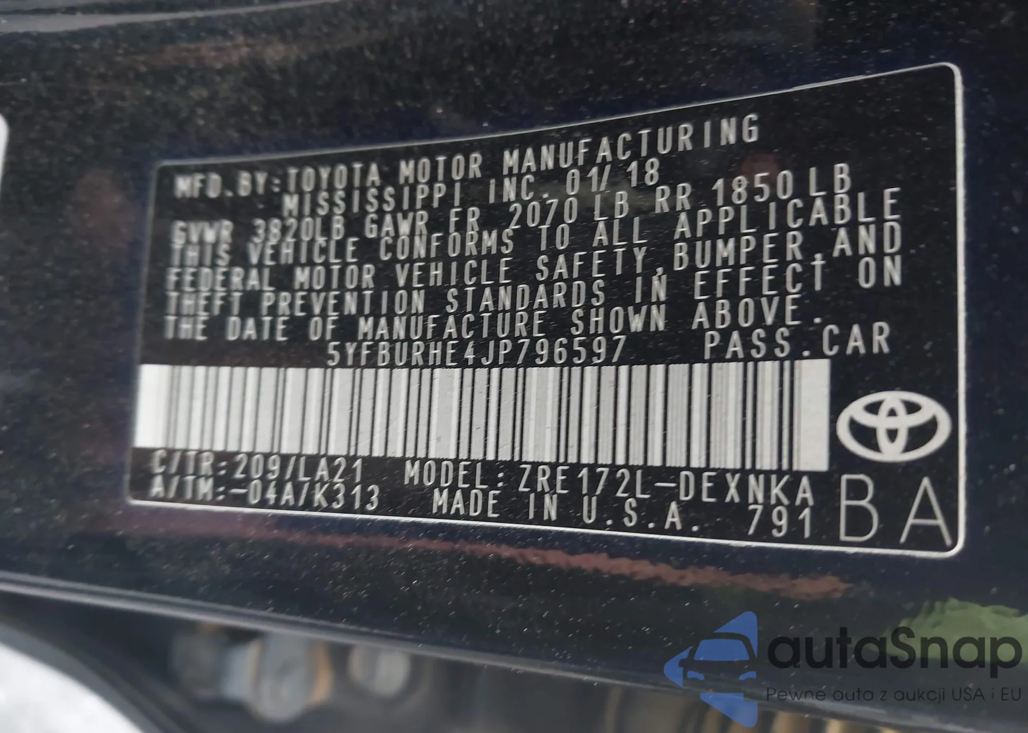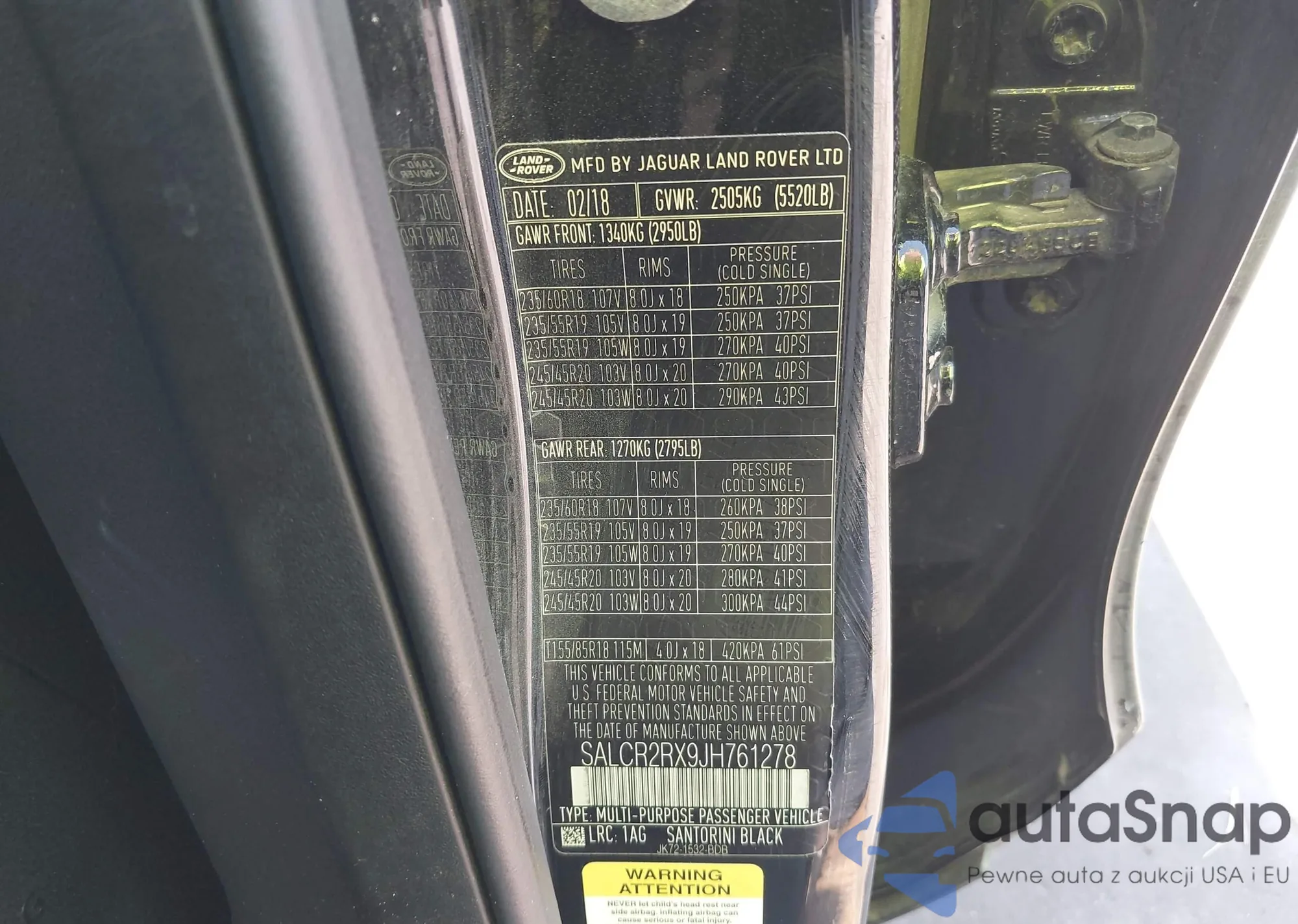 LOT: 43435951 VIN: SALCR2RX9JH761278