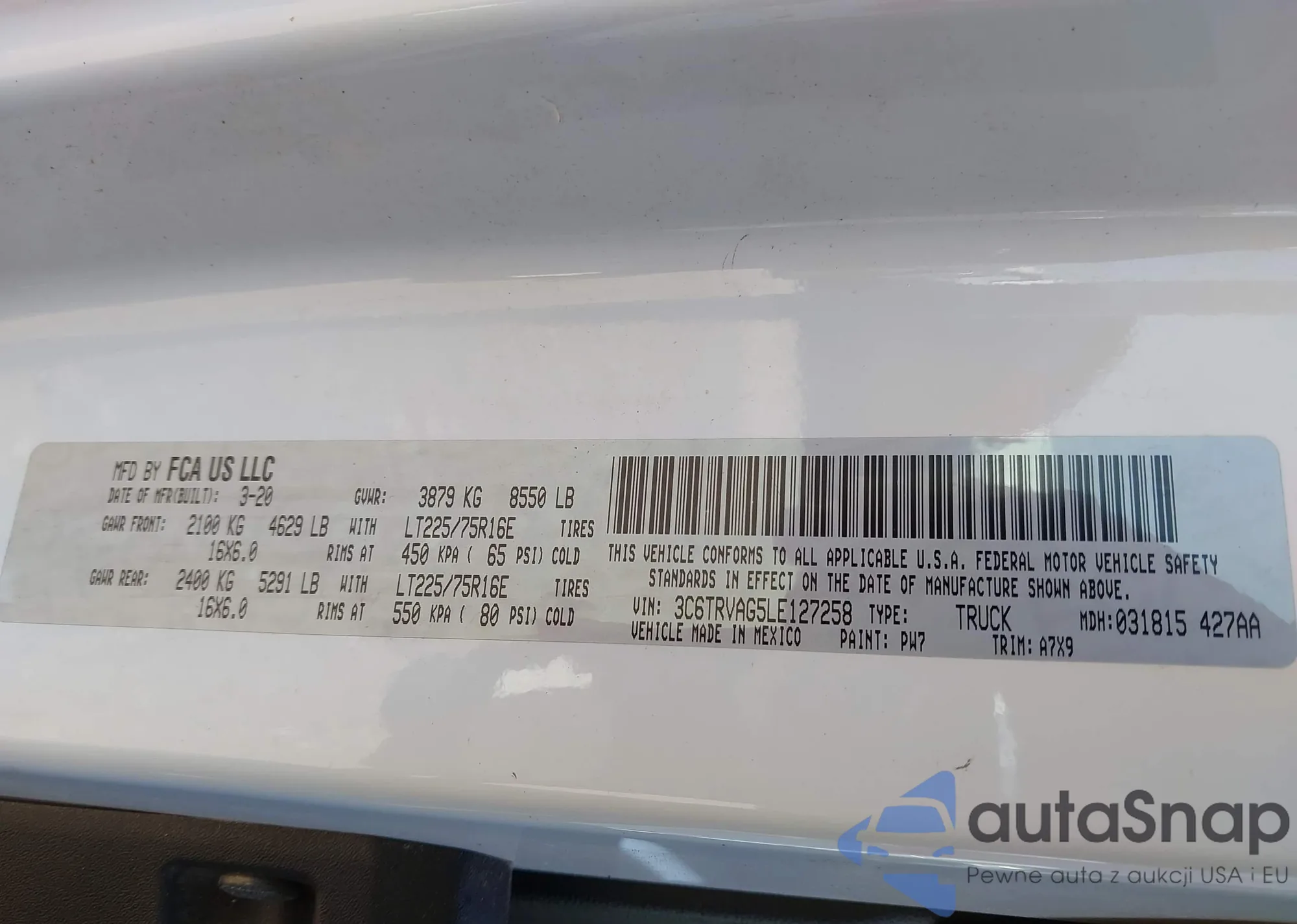 • VIN 3C6TRVBG6FE509575