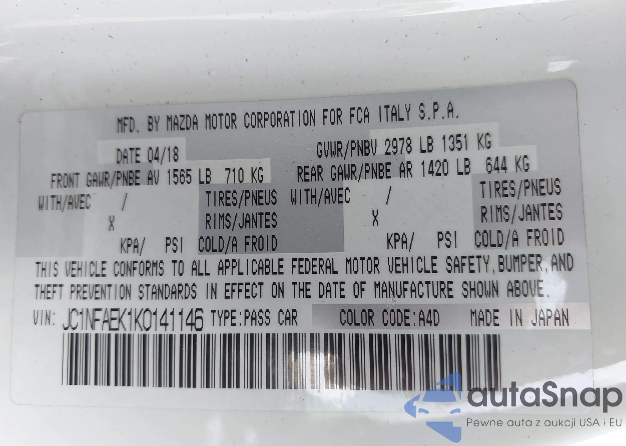 • VIN KNAFX5A84E5168819