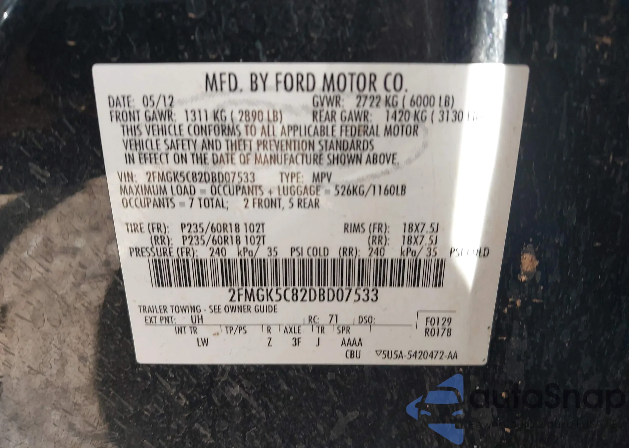 LOT: 42041903 VIN: KNAFX5A84E5168819