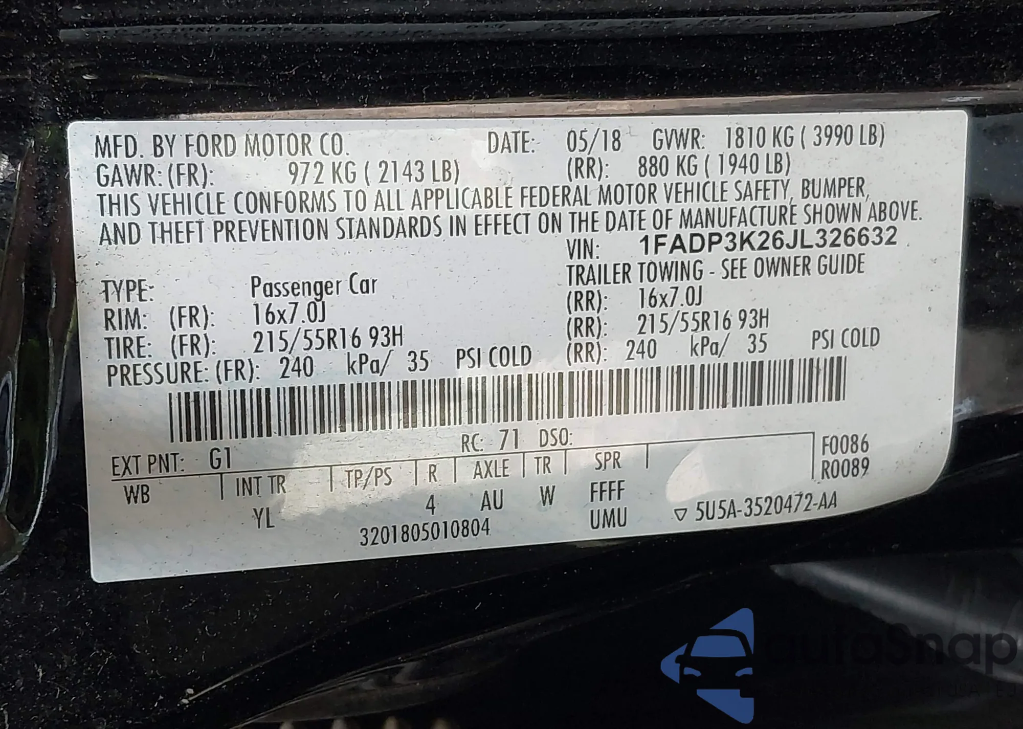 • VIN 1FA6P8TH3R5130043
