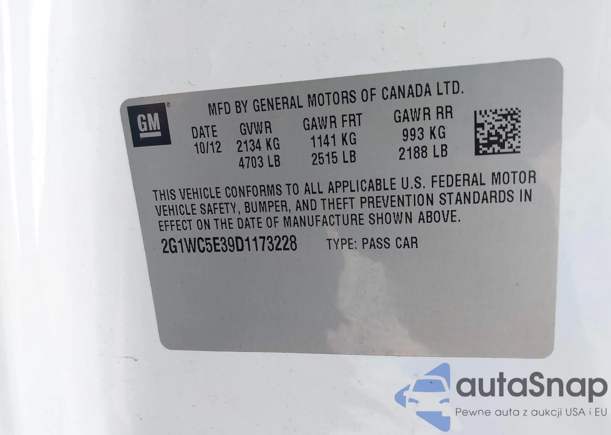 • VIN 2G1WC5E39D1173228