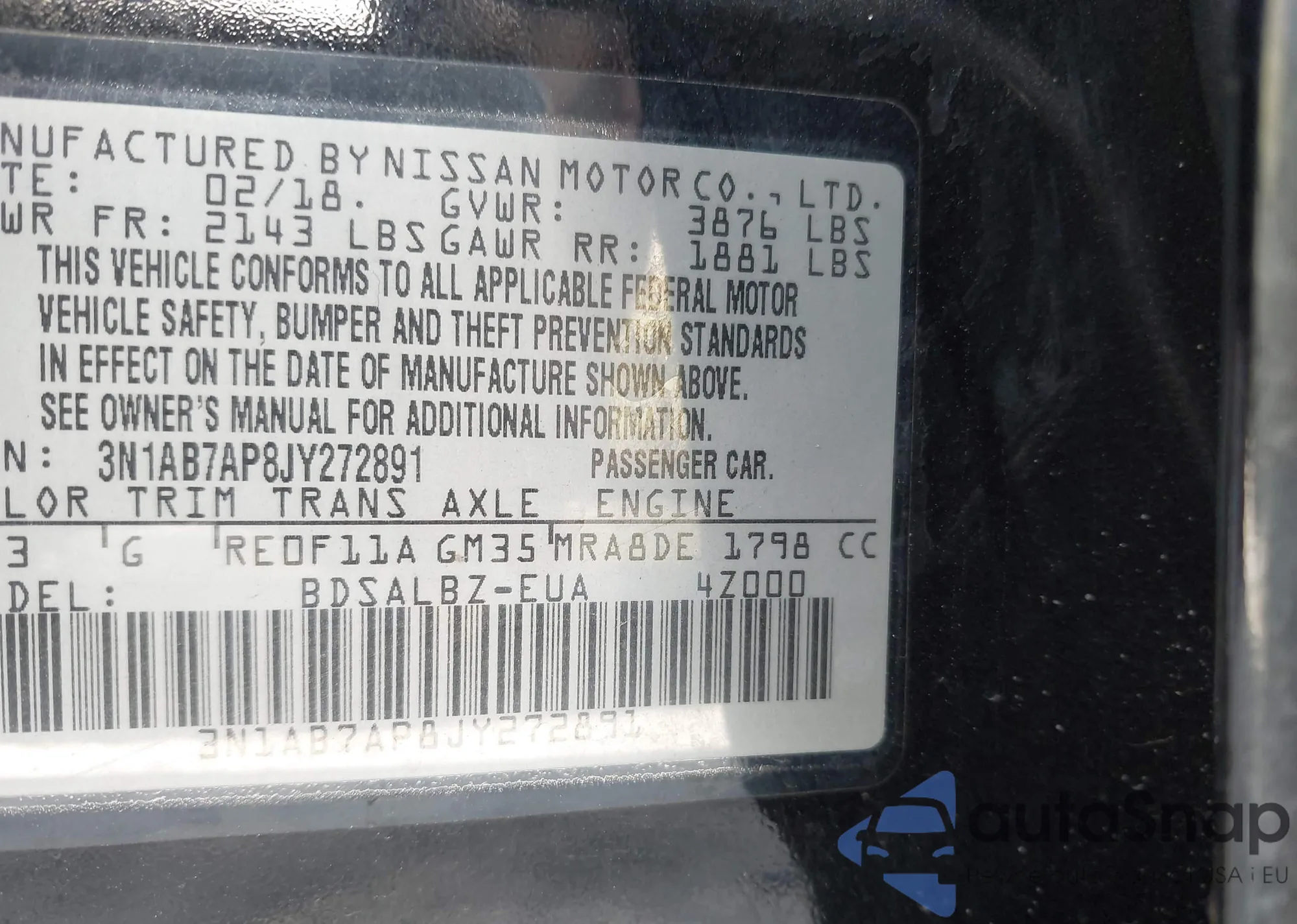• VIN 3N1AB8CV7NY285381