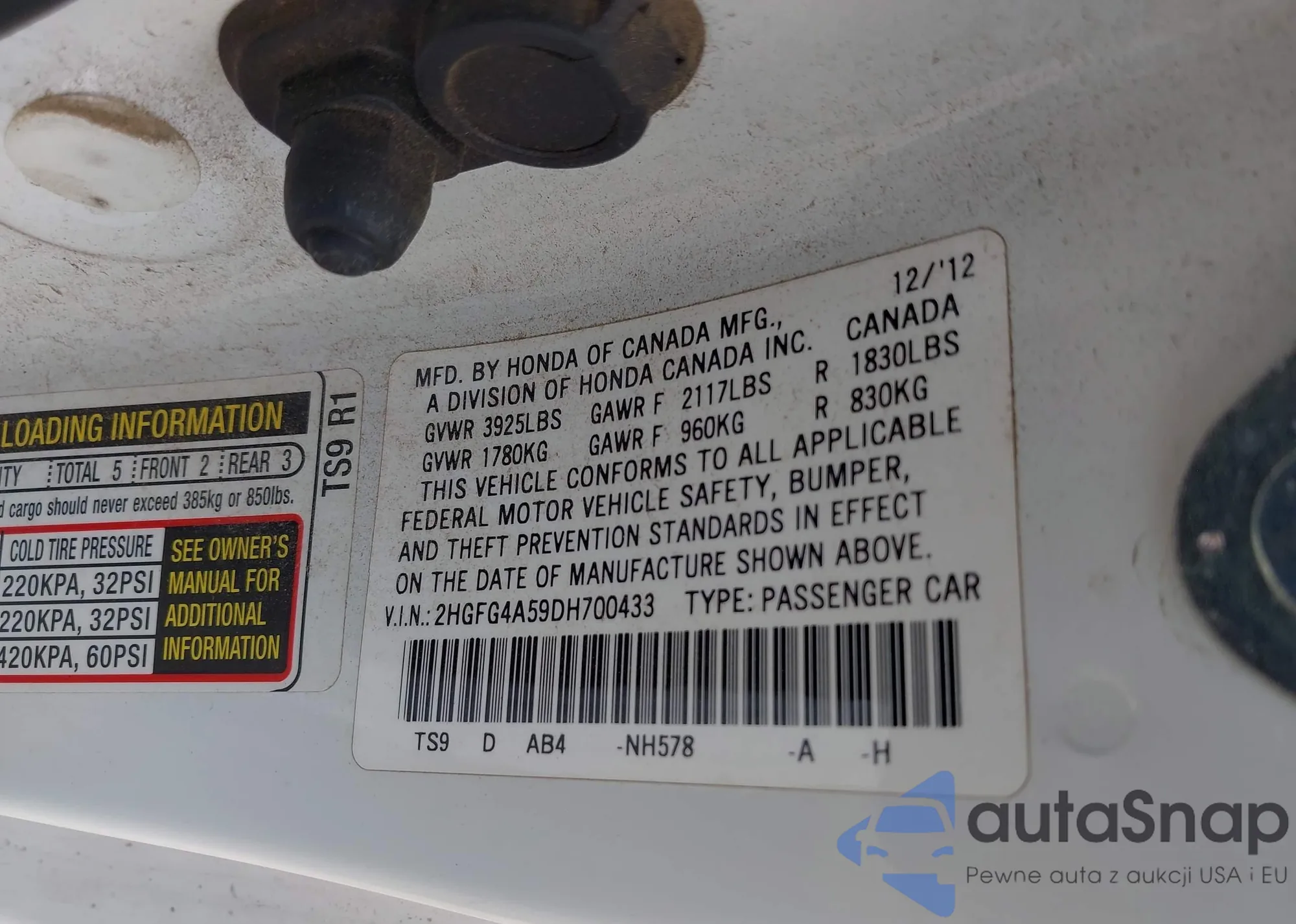 • VIN 2HGFG4A59DH700433