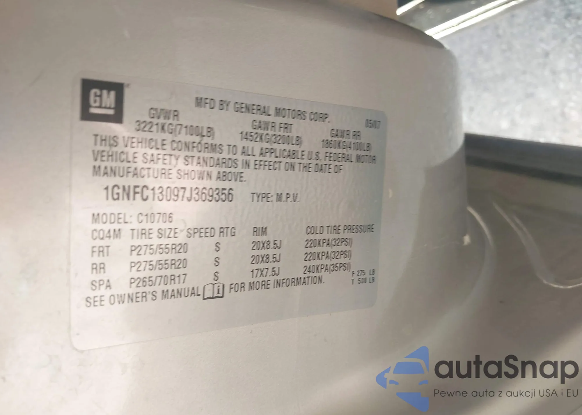 LOT: 43381691 VIN: 1GNFC13097J369356