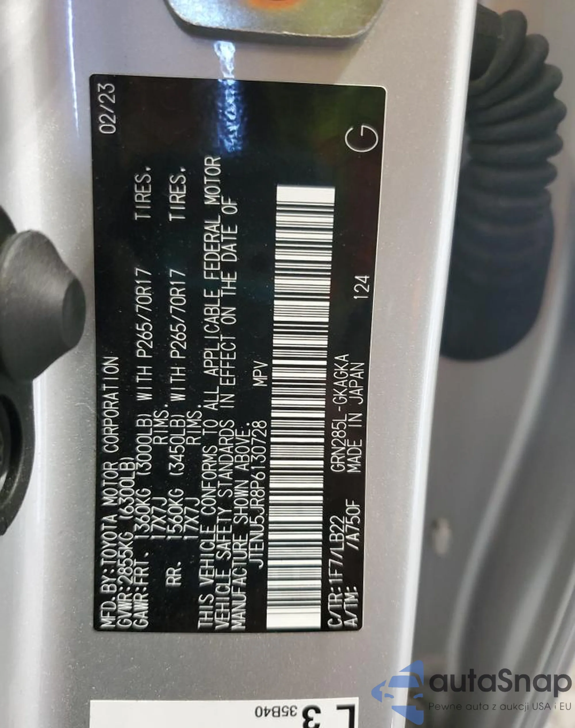 LOT: 69647995 VIN: JTENU5JR8P6130728