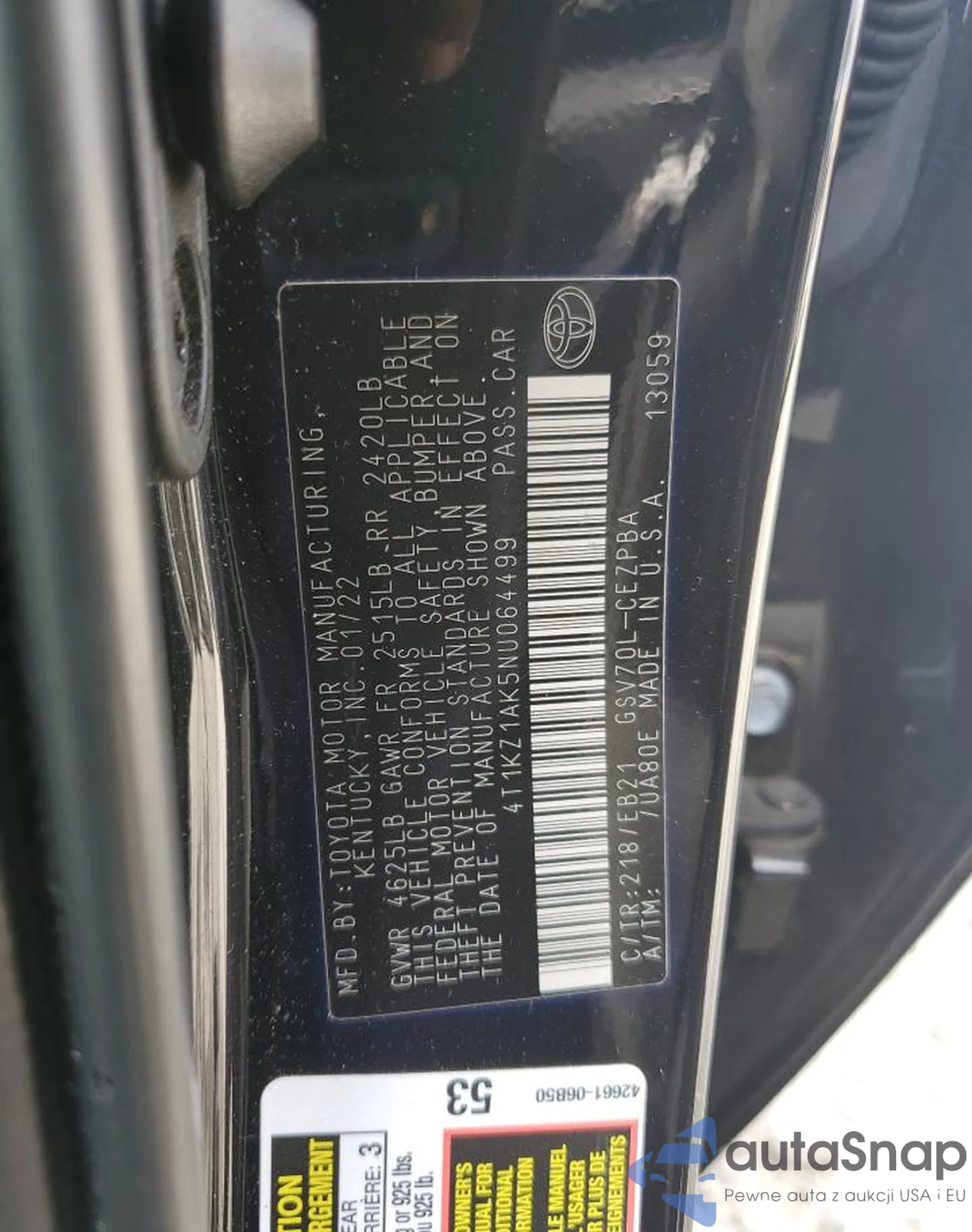 • VIN 4T1KZ1AK5NU064499