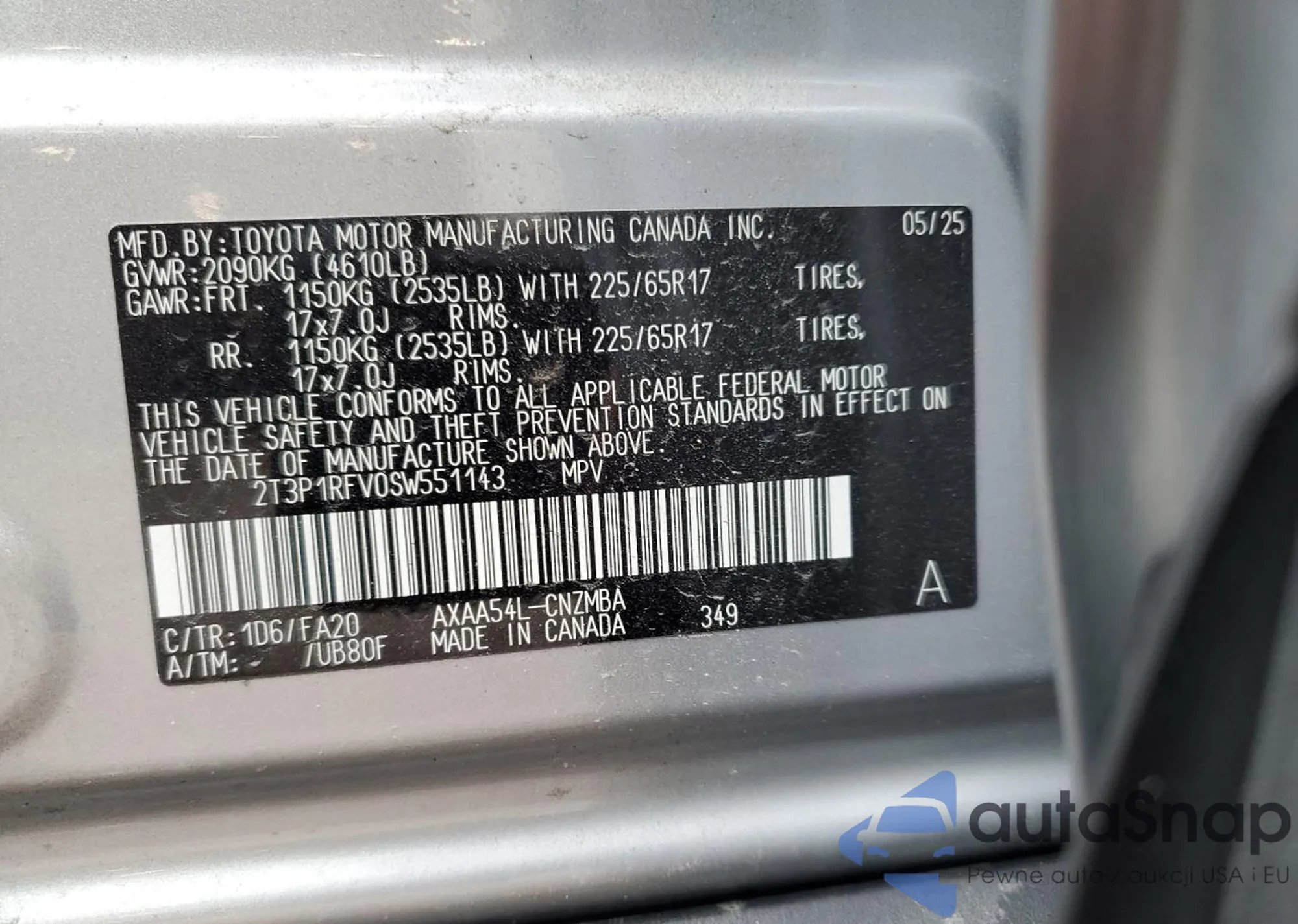 LOT: 81922295 VIN: 2T3RWRFV2LW091267