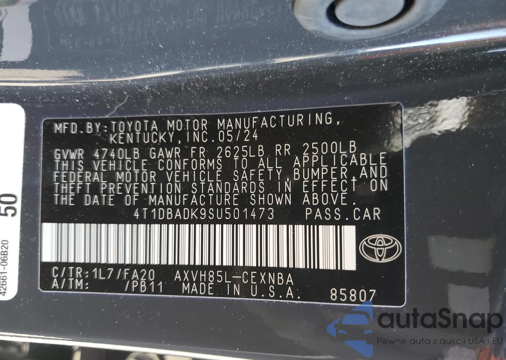 • VIN 4T1DBADK9SU501473