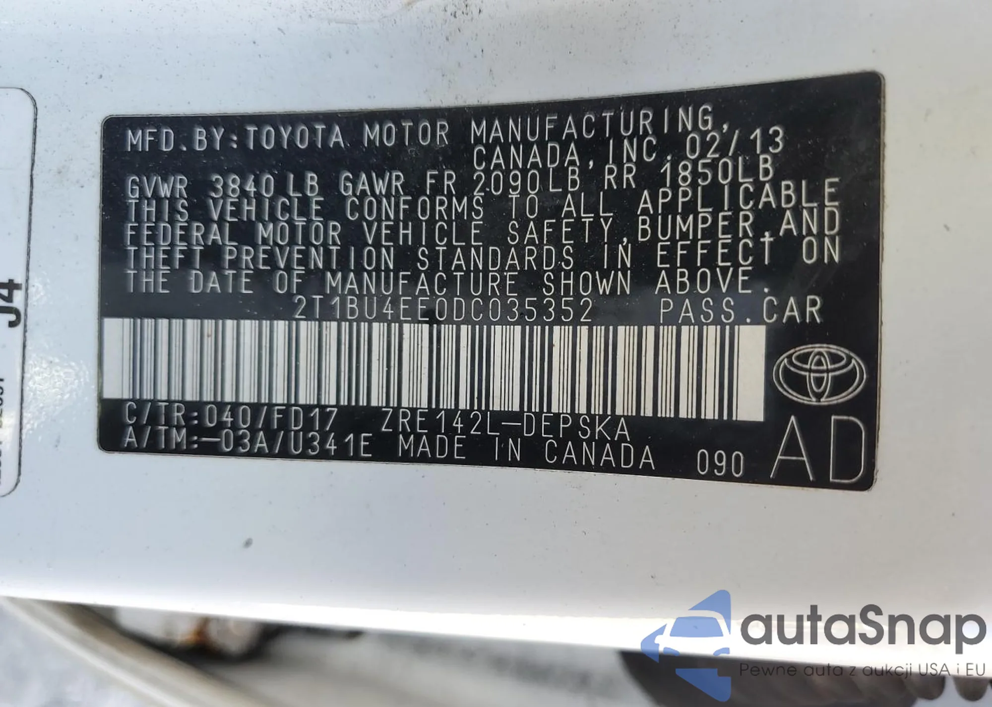 • VIN 2T1BU4EE0DC035352