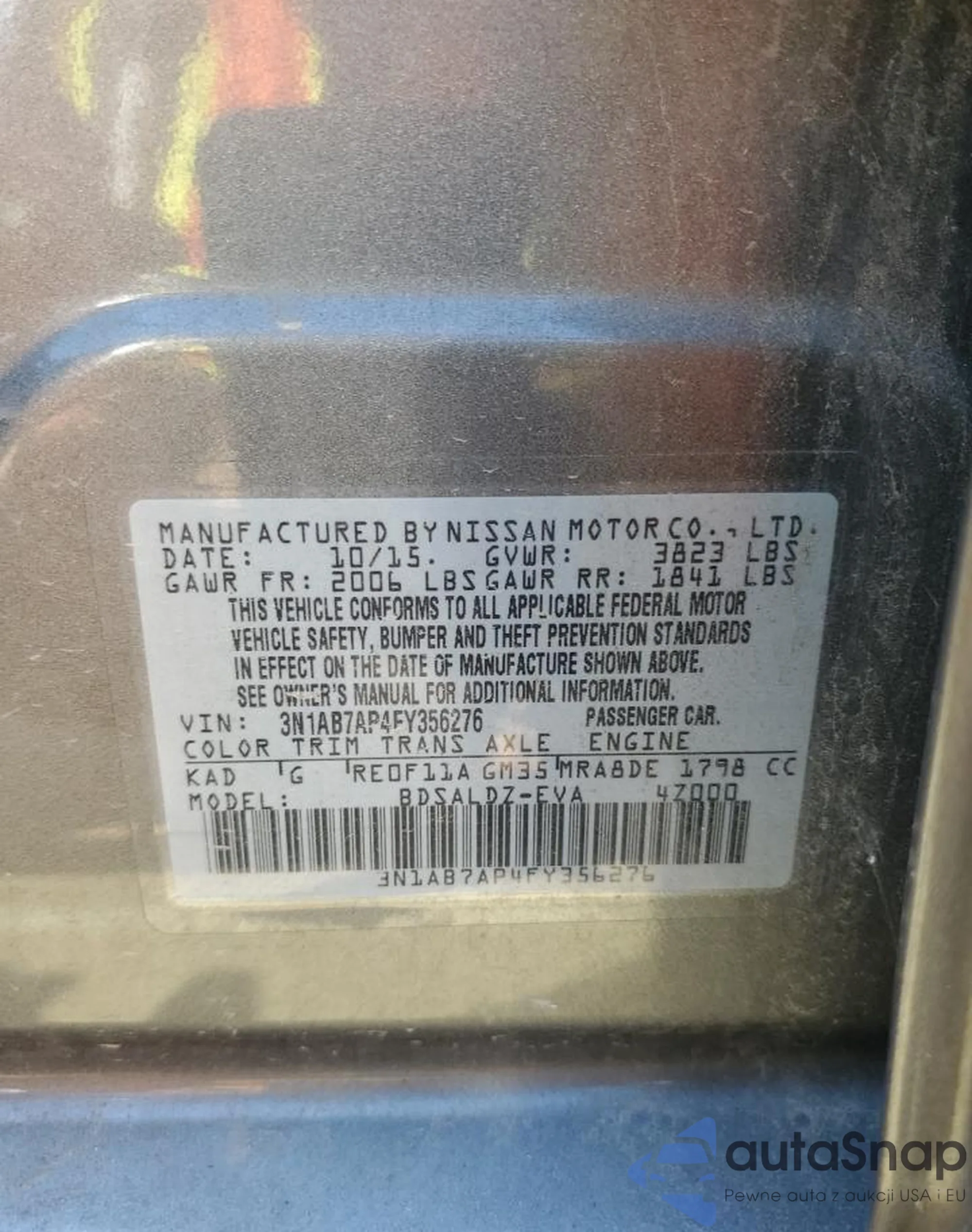• VIN 3N1AB7AP4FY356276
