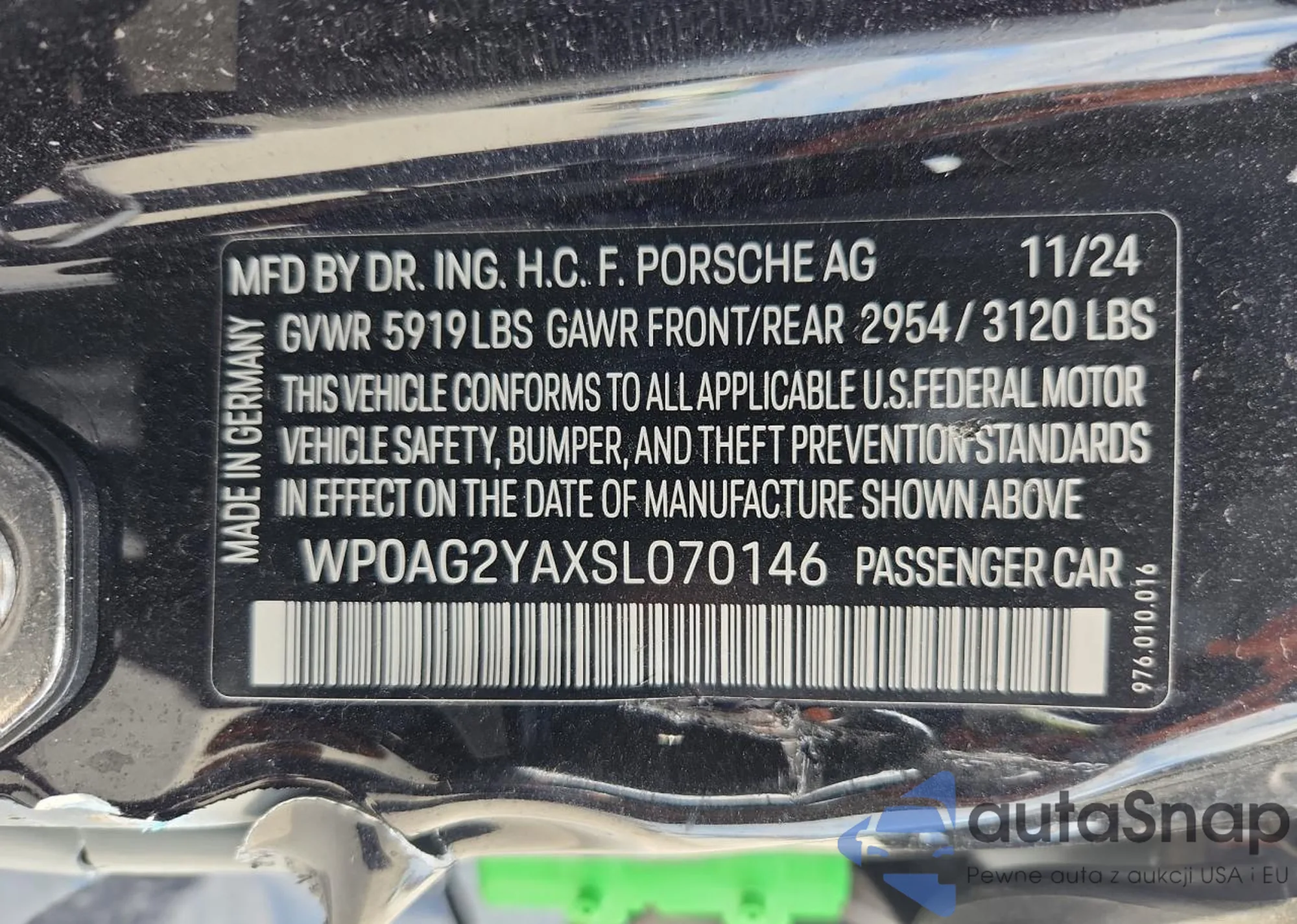LOT: 90596035 VIN: WP0AG2YAXSL070146