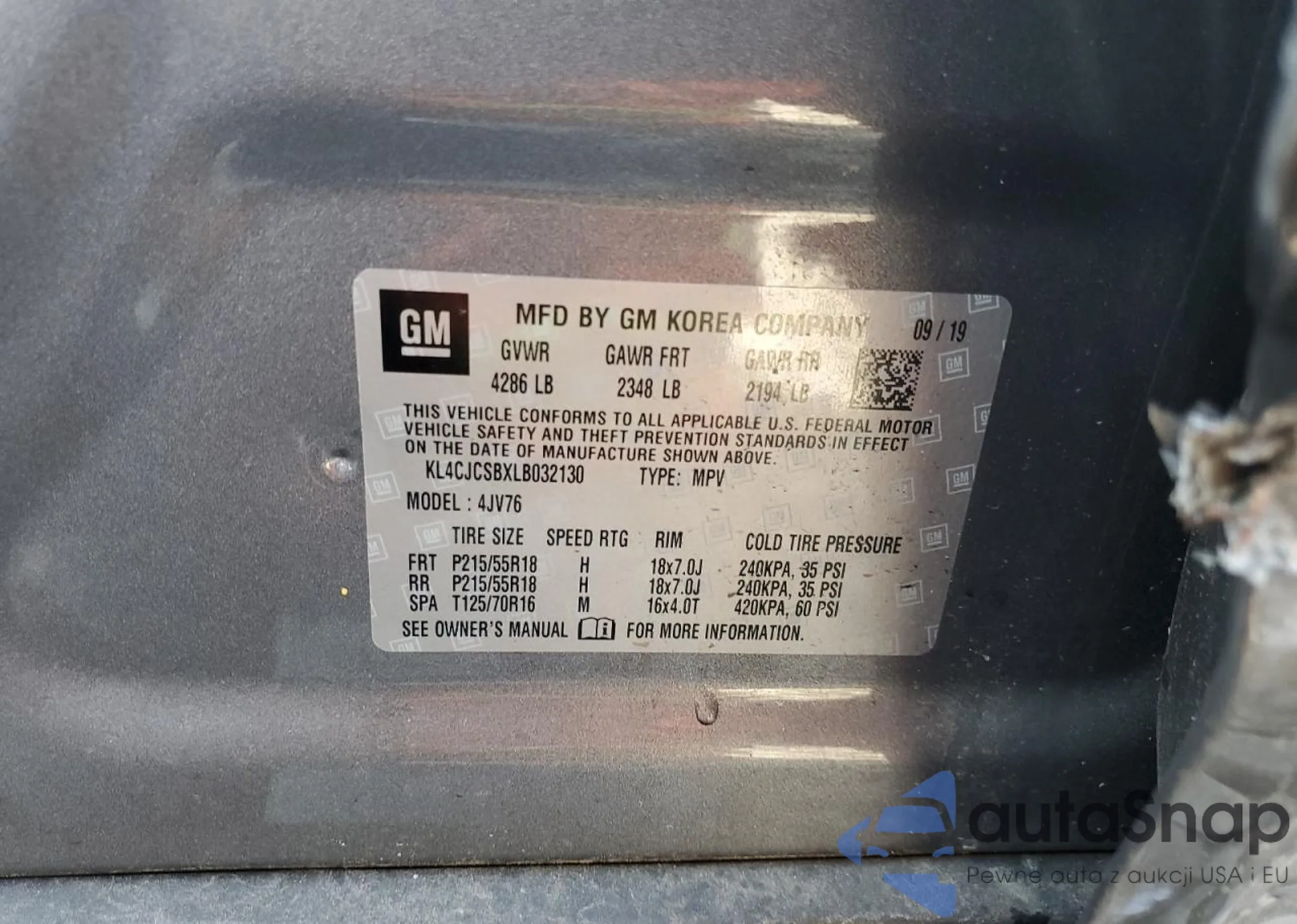 • VIN KL4CJCSBXLB032130
